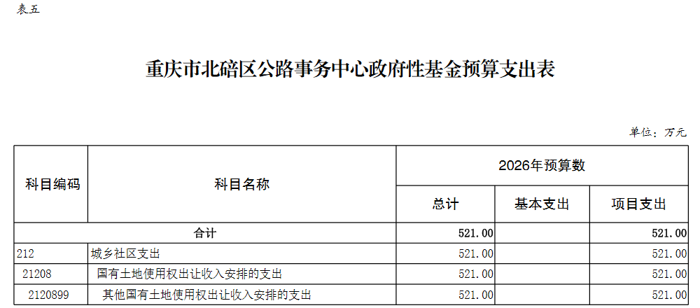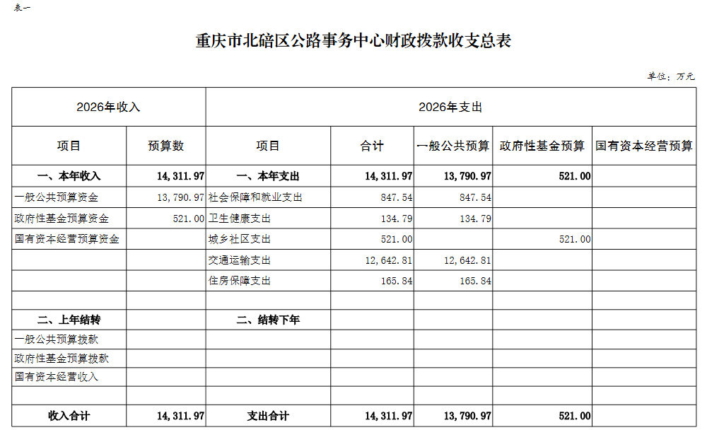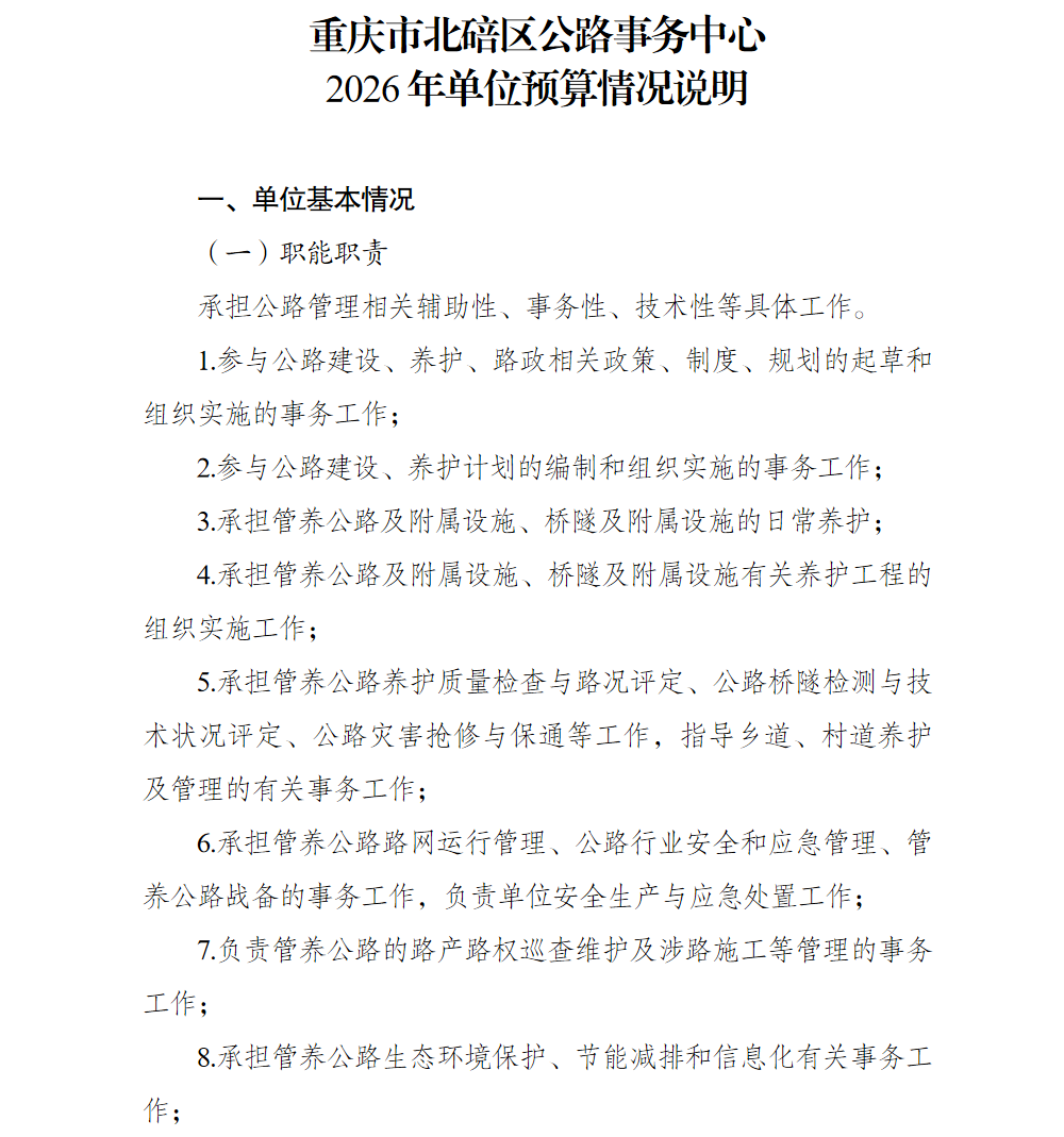 重庆市北碚区公路事务中心2026年单位预算情况说明