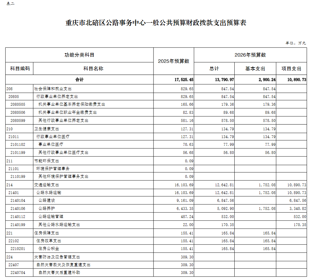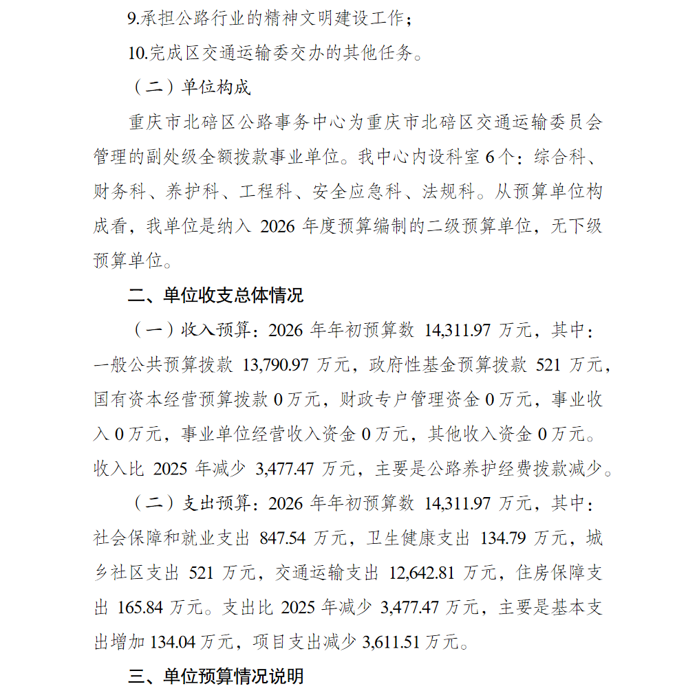 重庆市北碚区公路事务中心2026年单位预算情况说明及附表.pdf