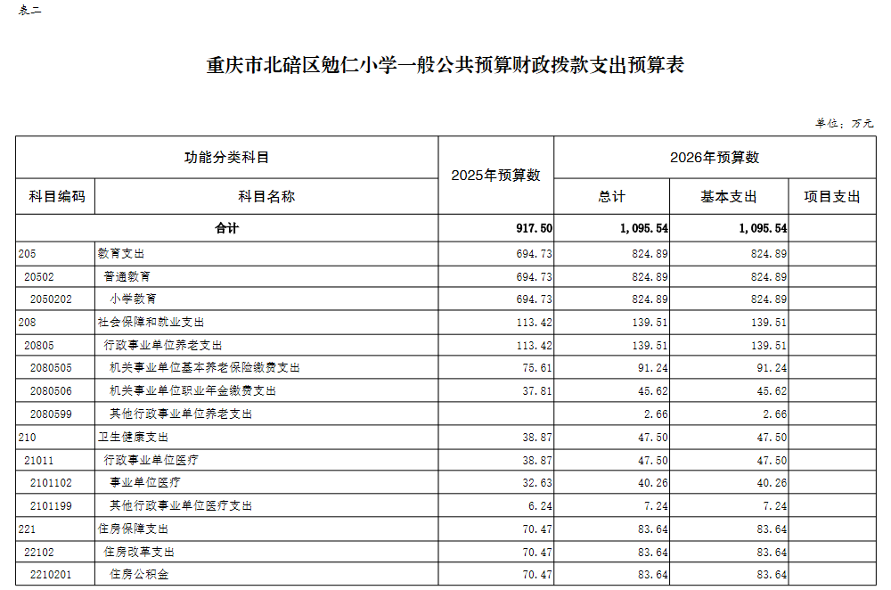 重庆市北碚区勉仁小学2026年单位预算情况说明及附表.pdf