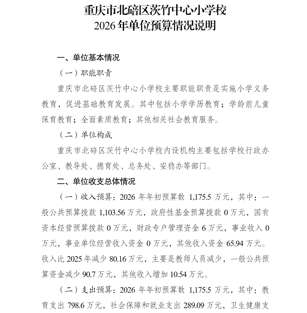 重庆市北碚区茨竹中心小学校2026年单位预算情况说明及附表.pdf