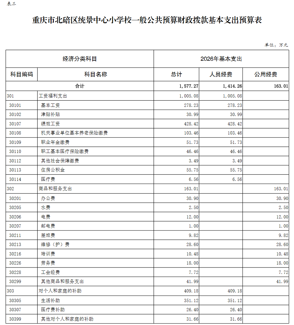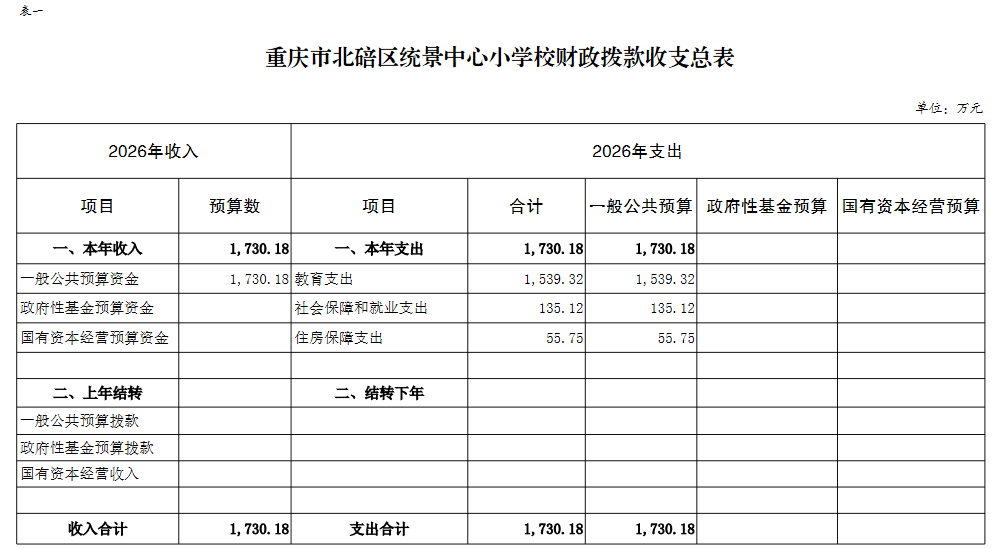 重庆市北碚区统景中心小学校2026年单位预算情况说明及附表.pdf