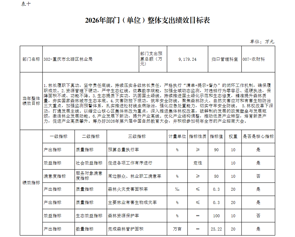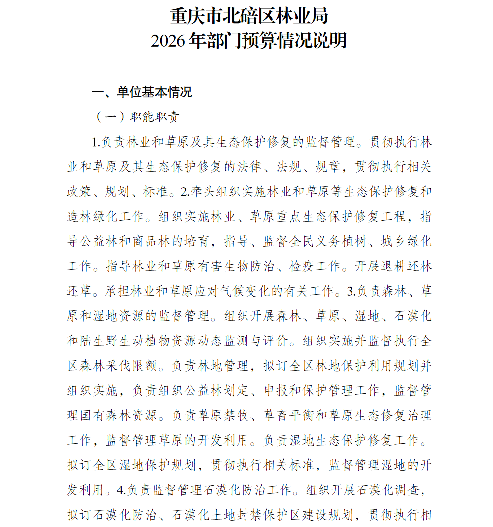 重庆市北碚区林业局2026年部门预算情况说明