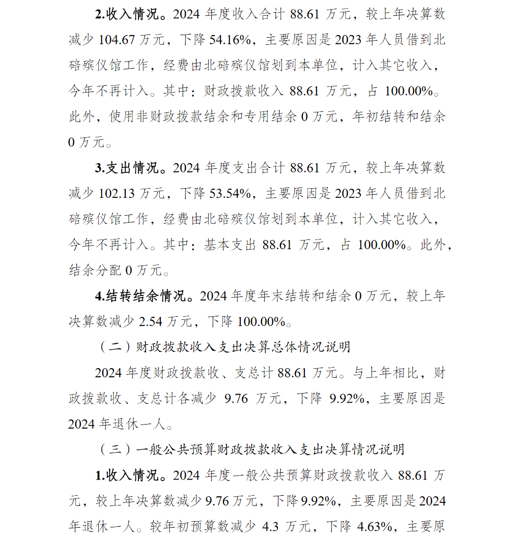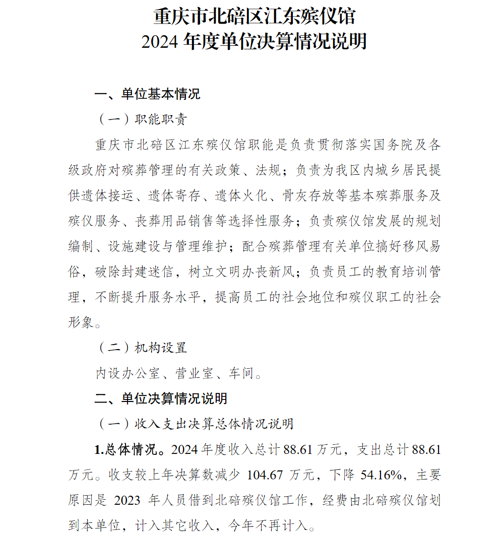 重庆市北碚区江东殡仪馆2024年度单位决算情况说明