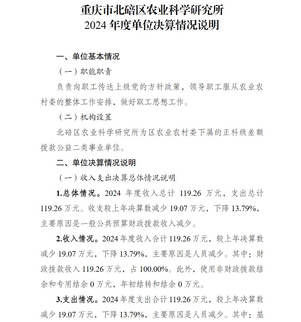 重庆市北碚区农业科学研究所2024年单位决算情况说明