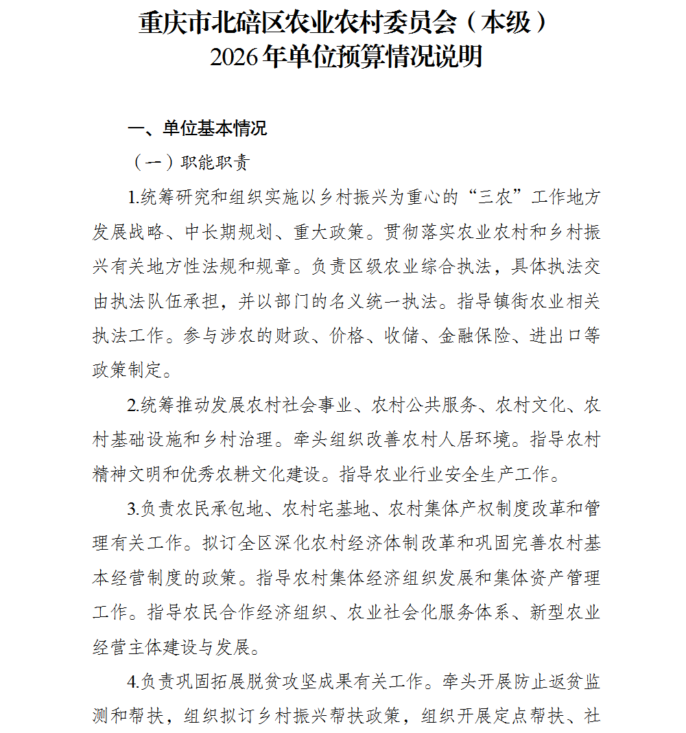 重庆市北碚区农业农村委员会(本级)2026年单位预算情况说明及附表.pdf