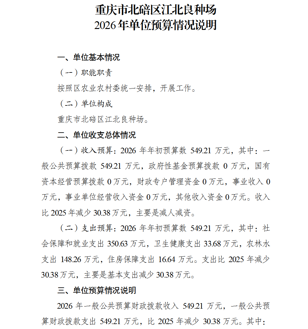 重庆市北碚区江北良种场2026年单位预算情况说明及附表.pdf