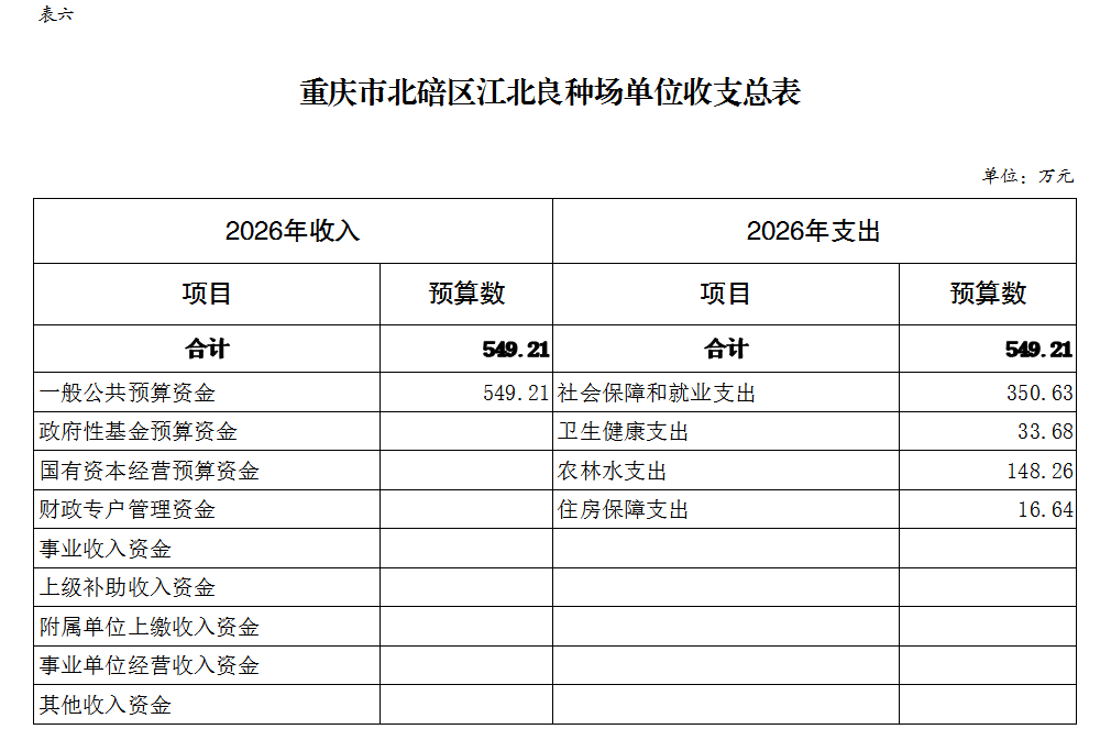重庆市北碚区江北良种场2026年单位预算情况说明及附表