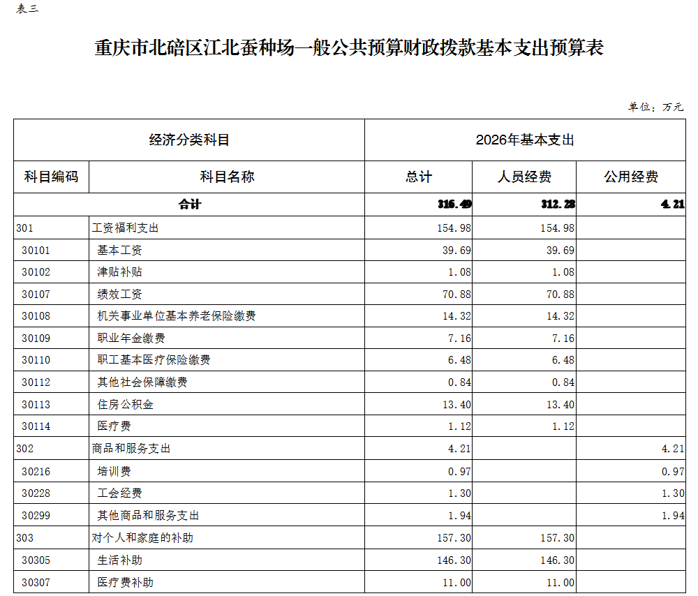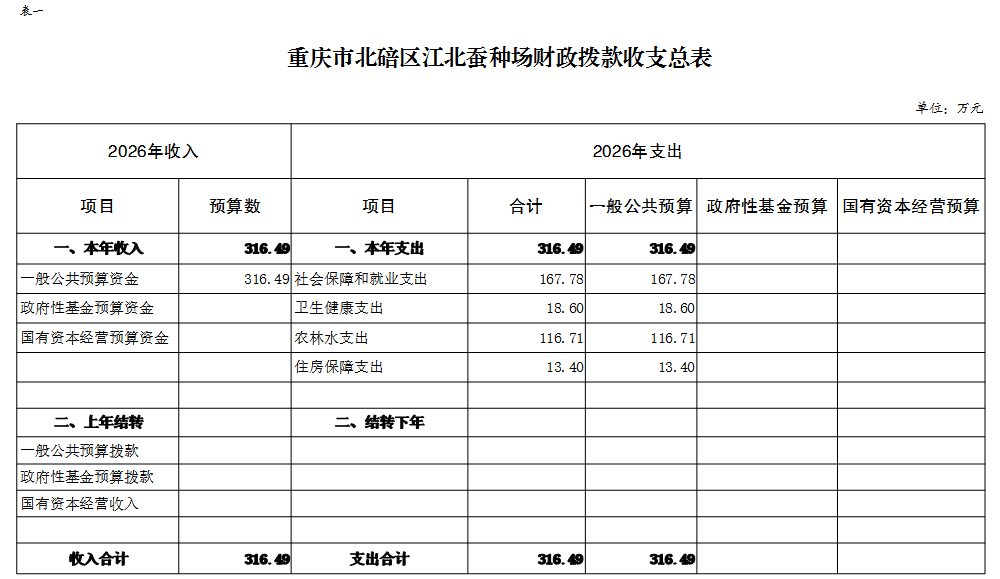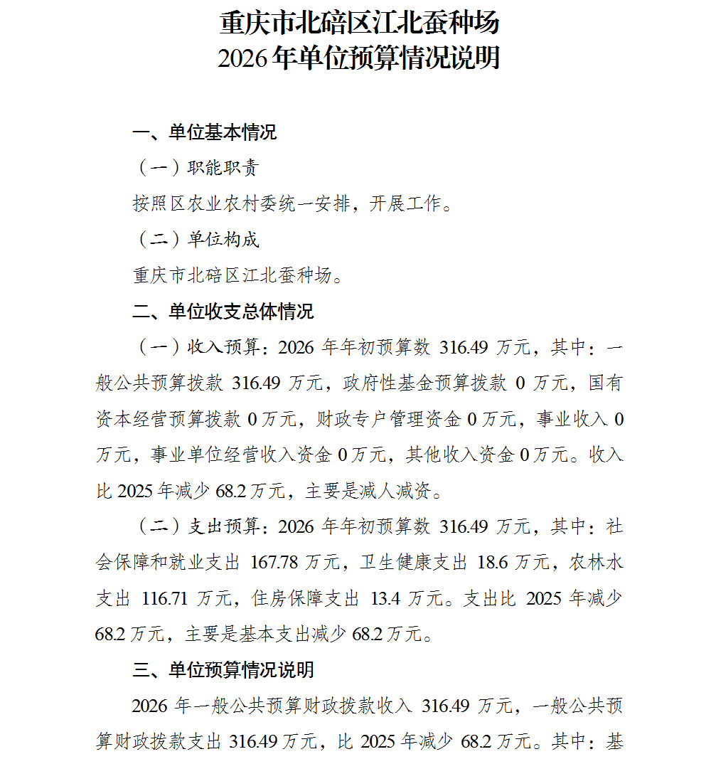 重庆市北碚区江北蚕种场2026年单位预算情况说明及附表