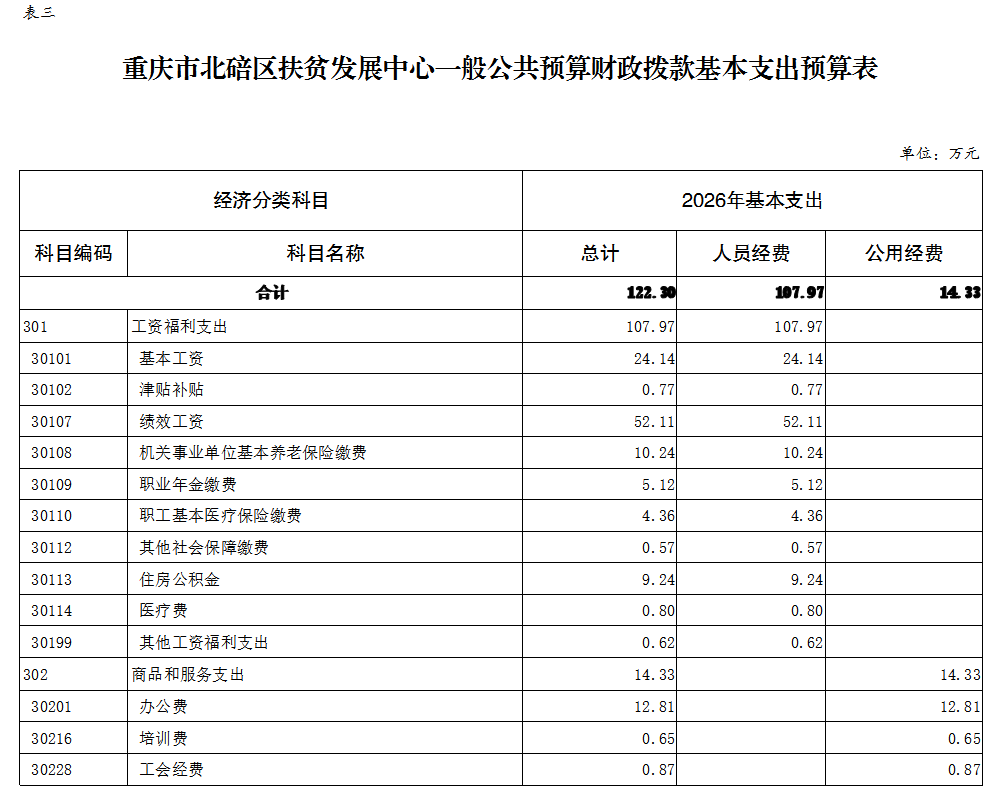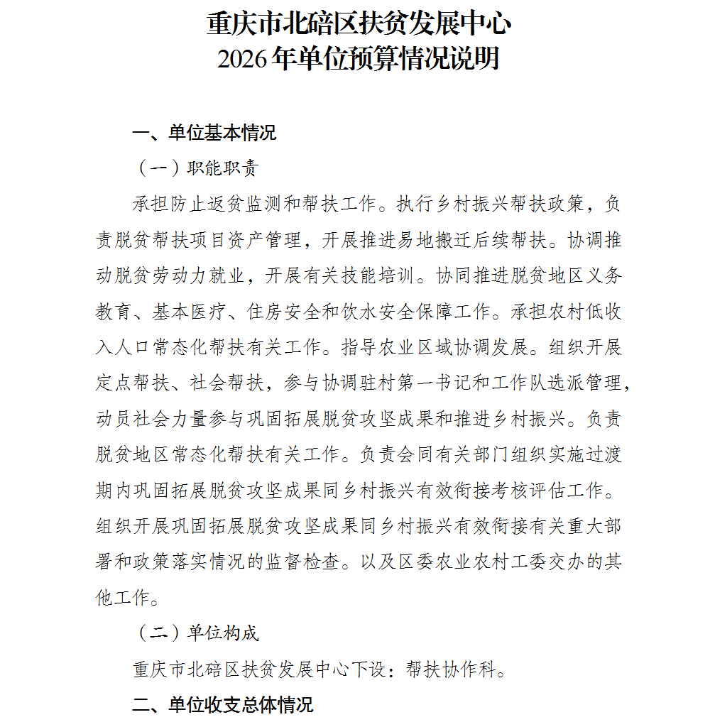 重庆市北碚区扶贫发展中心2026年单位预算情况说明及附表