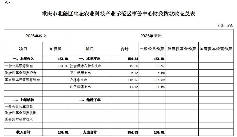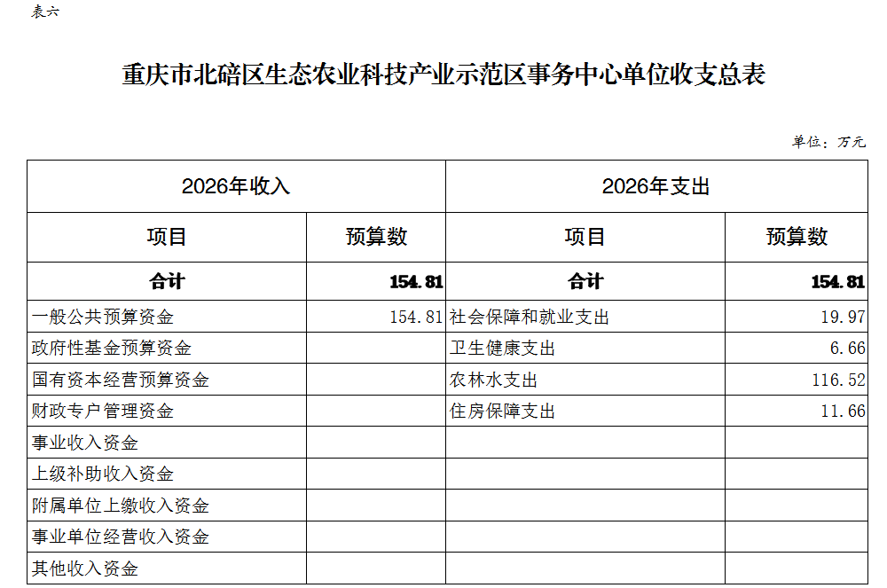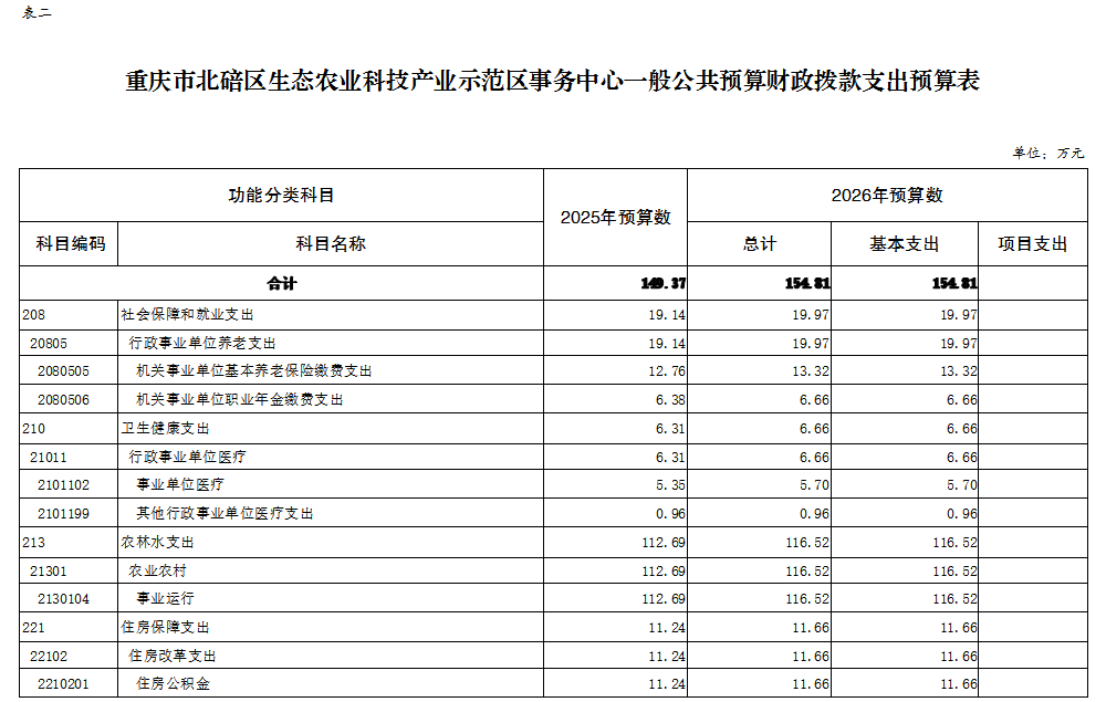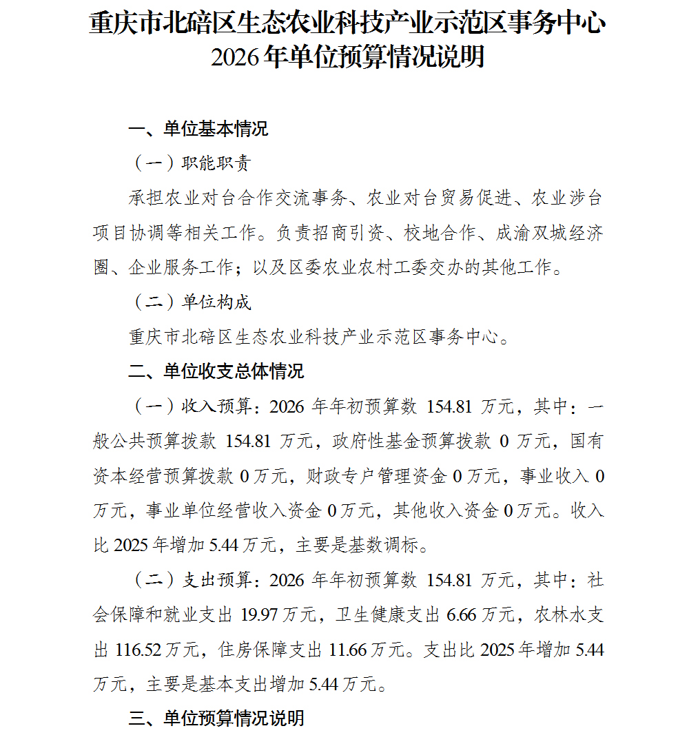 重庆市北碚区生态农业科技产业示范区事务中心2026年单位预算情况说明及附表.pdf