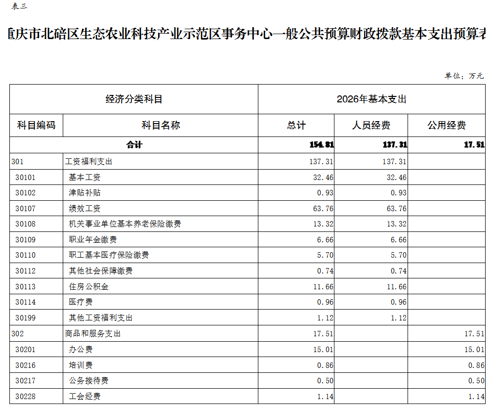 重庆市北碚区生态农业科技产业示范区事务中心2026年单位预算情况说明及附表