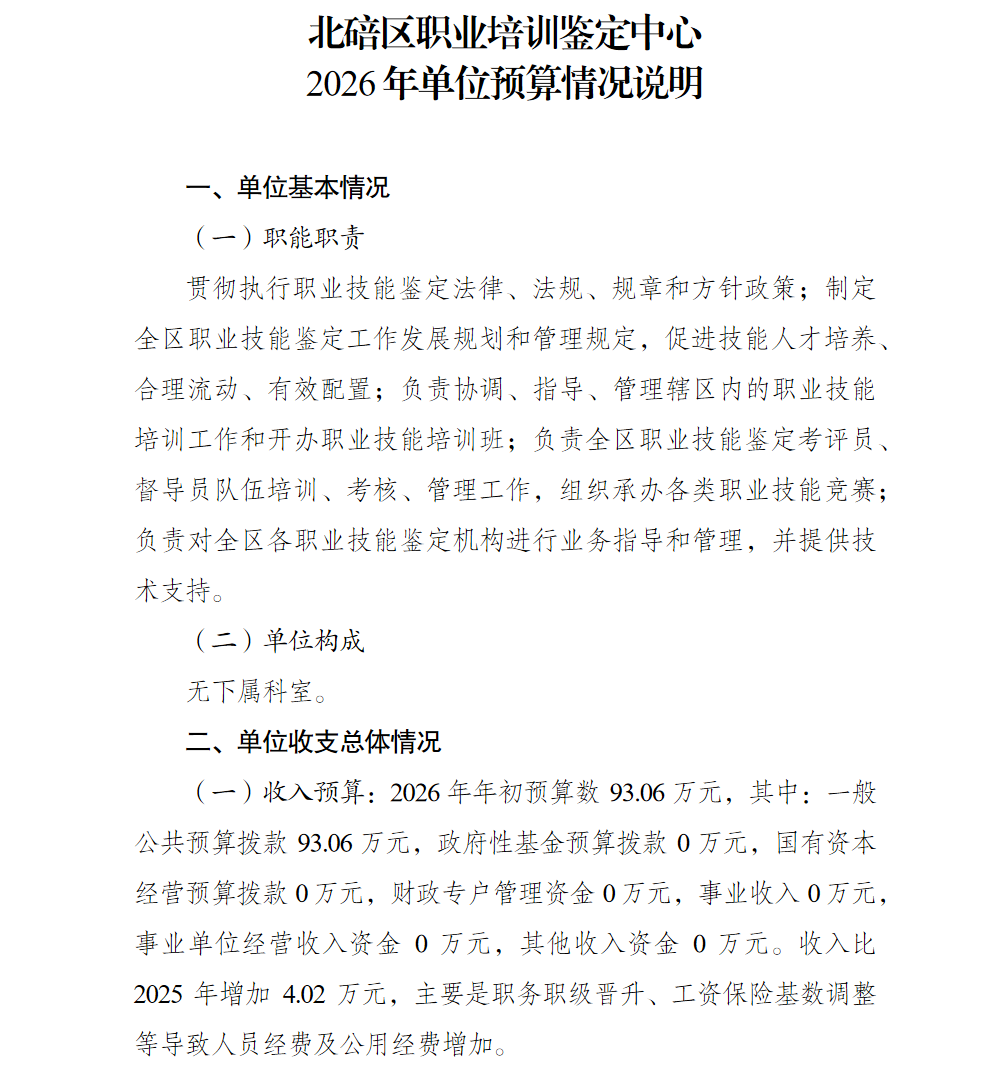 北碚区职业培训鉴定中心2026年单位预算情况说明及附表.pdf