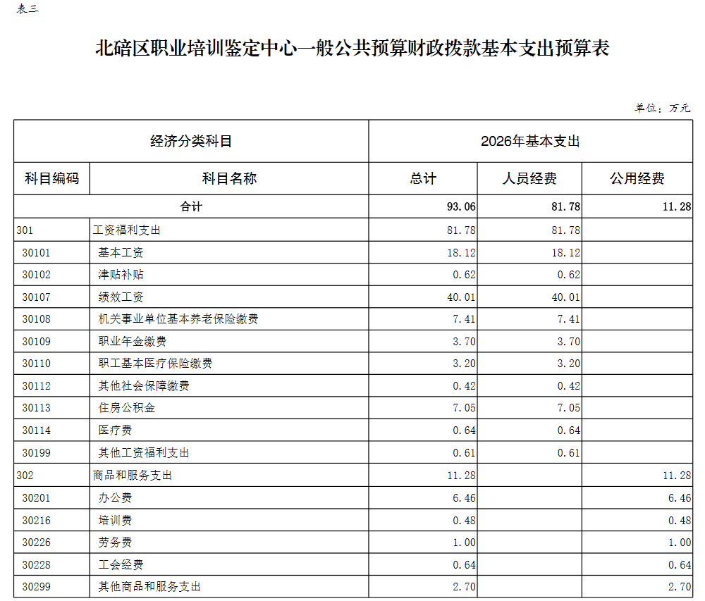 北碚区职业培训鉴定中心2026年单位预算情况说明及附表