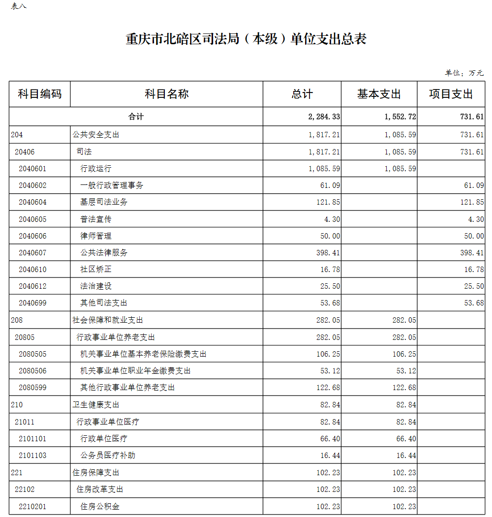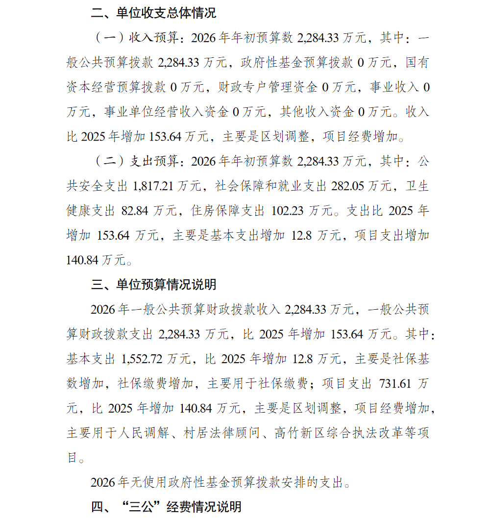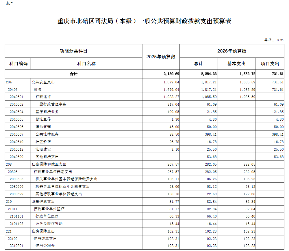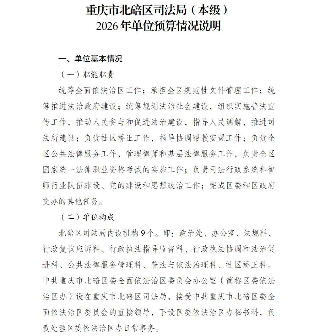 重庆市北碚区司法局(本级)2026年单位预算情况说明