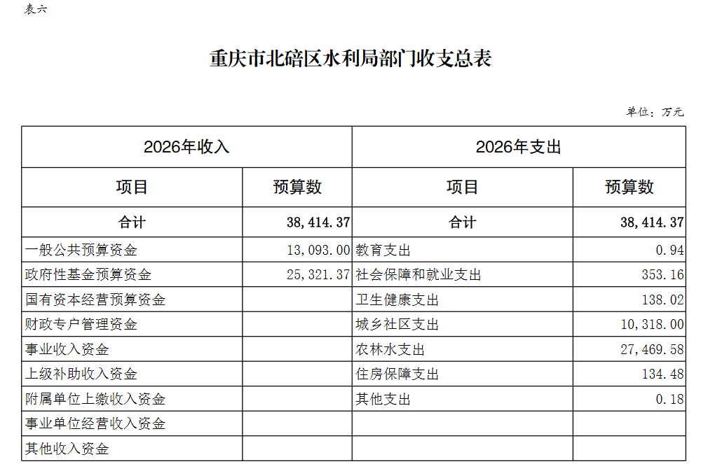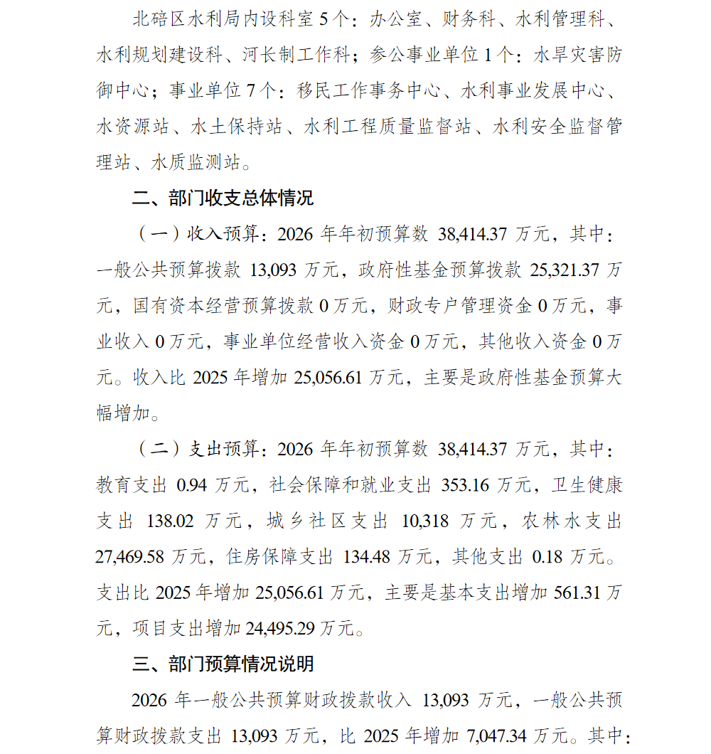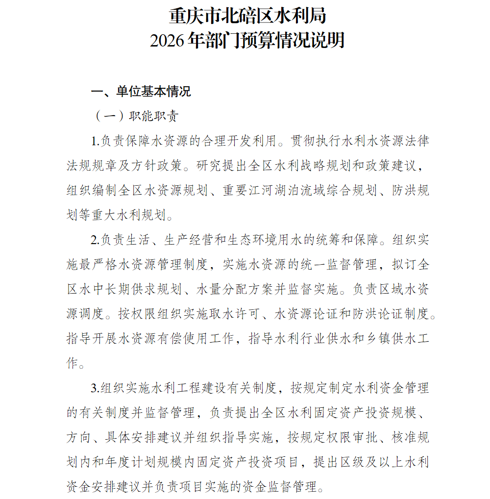 重庆市北碚区水利局2026年部门预算情况说明
