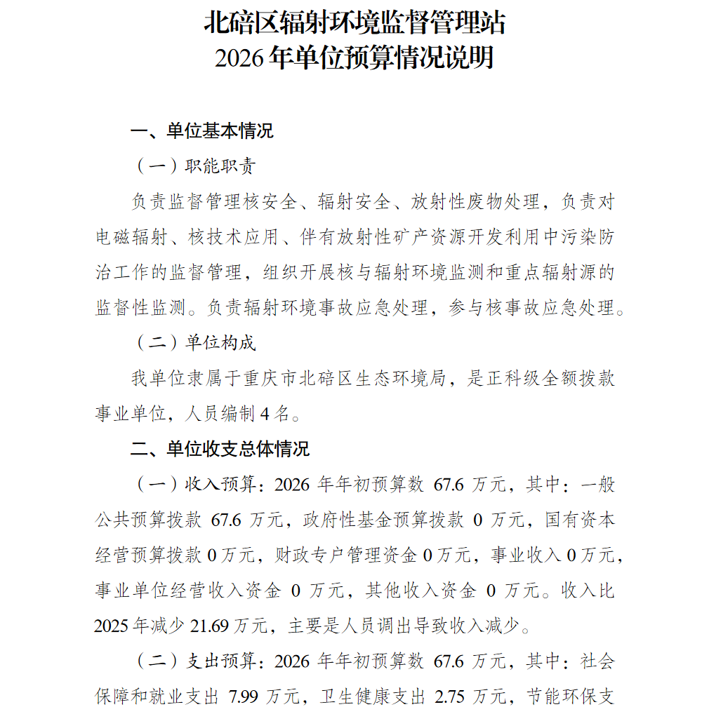 北碚区辐射环境监督管理站2026年单位预算情况说明及附表.pdf