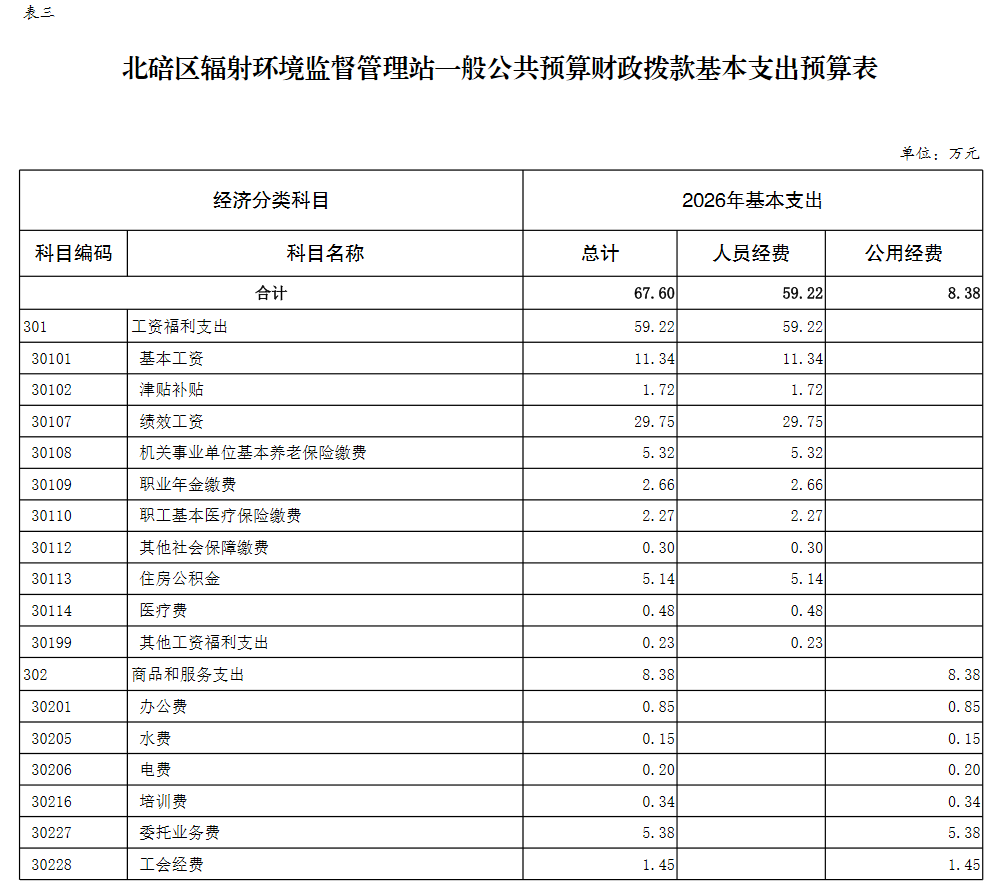 北碚区辐射环境监督管理站2026年单位预算情况说明