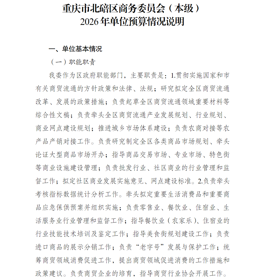 重庆市北碚区商务委员会(本级)2026年单位预算情况说明