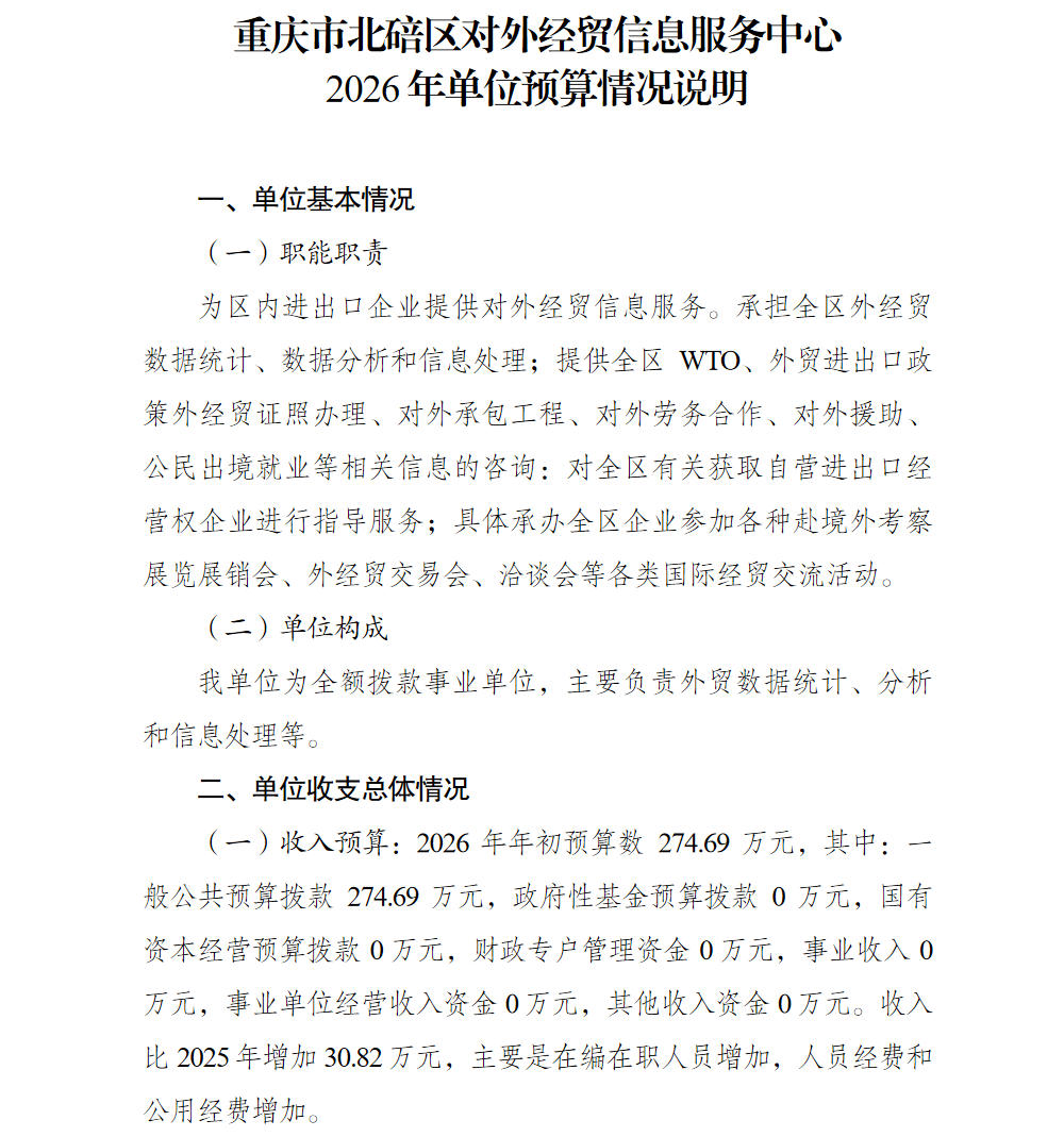 重庆市北碚区对外经贸信息服务中心2026年单位预算情况说明及附表.pdf