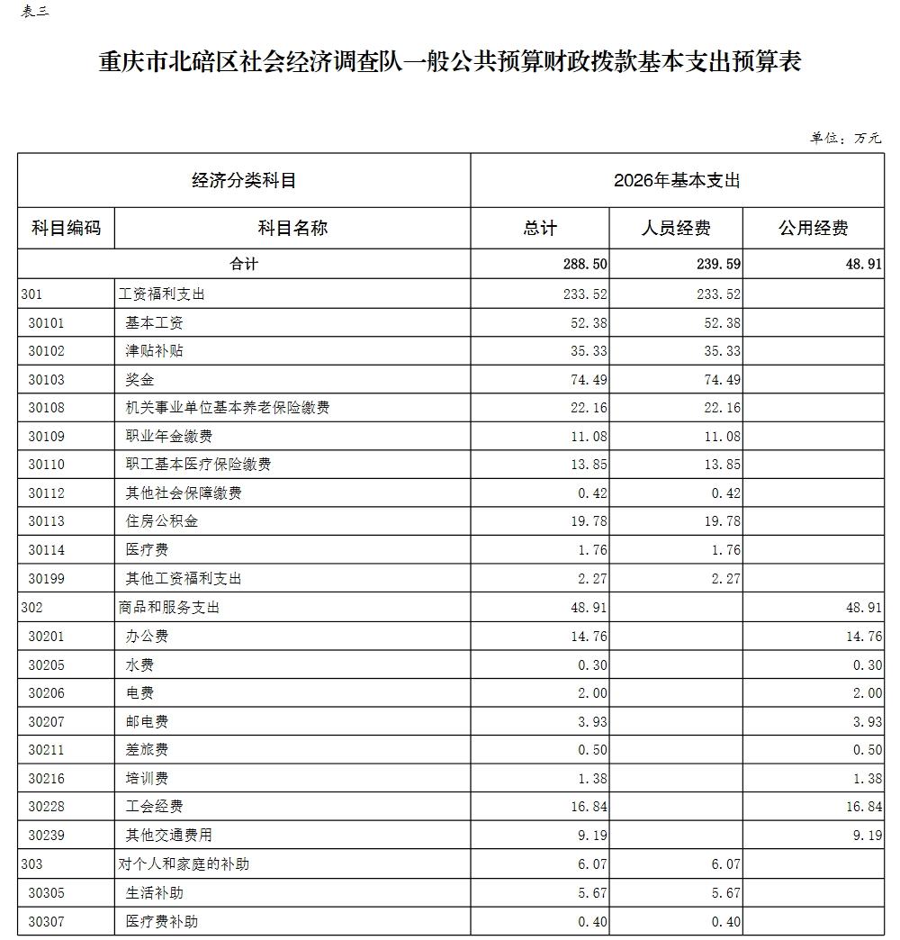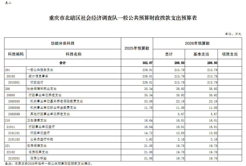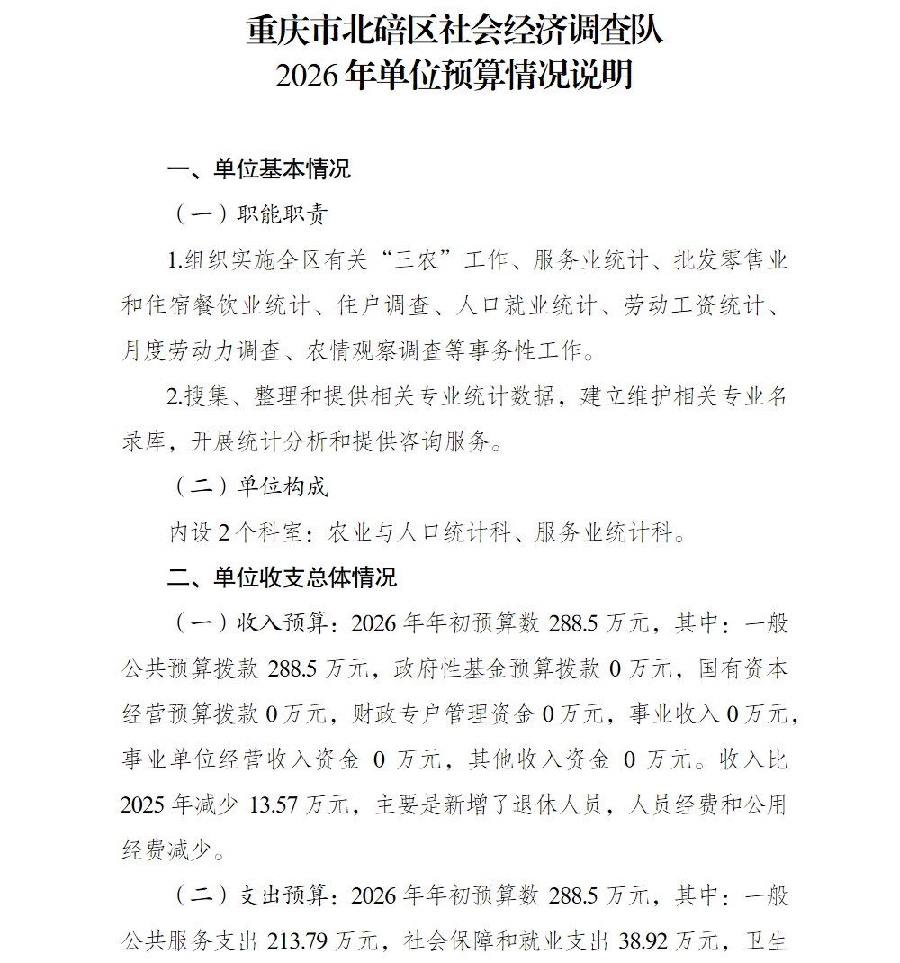 重庆市北碚区社会经济调查队2026年单位预算情况说明