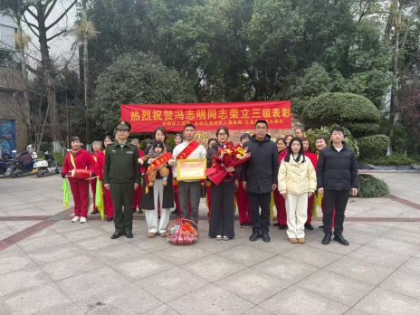 上午,送喜报队伍先来到北温泉街道隆重举行送喜报仪式,为荣获部队三级表彰的现役军人冯志明同志送上喜报。冯志明本人身披绶带出席,现场接受家乡人民的祝贺与致敬,展现了当代军人的昂扬风貌。