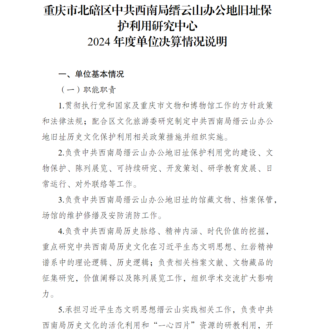 重庆市北碚区中共西南局缙云山办公地旧址保护利用研究中心2024年单位决算情况说明及附表.pdf