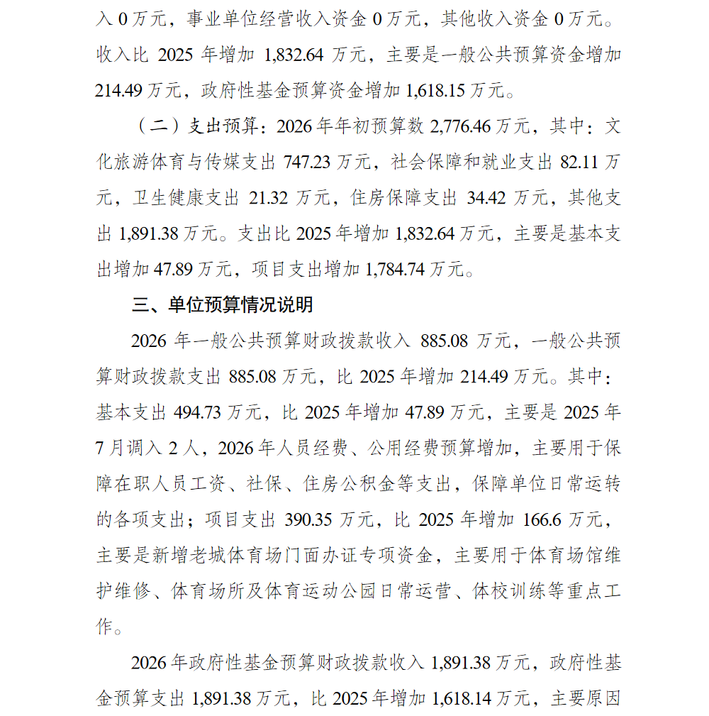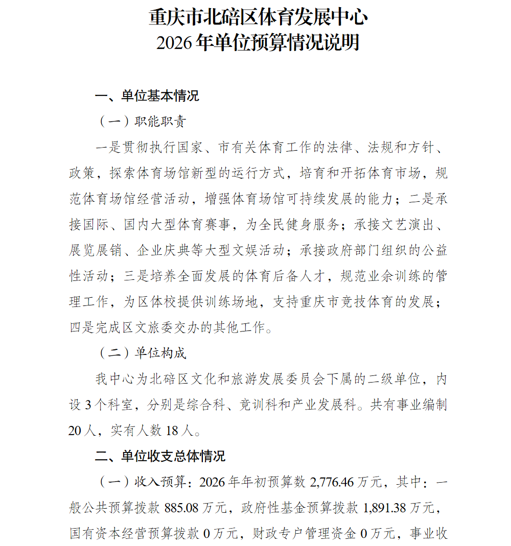 重庆市北碚区体育发展中心2026年单位预算情况说明