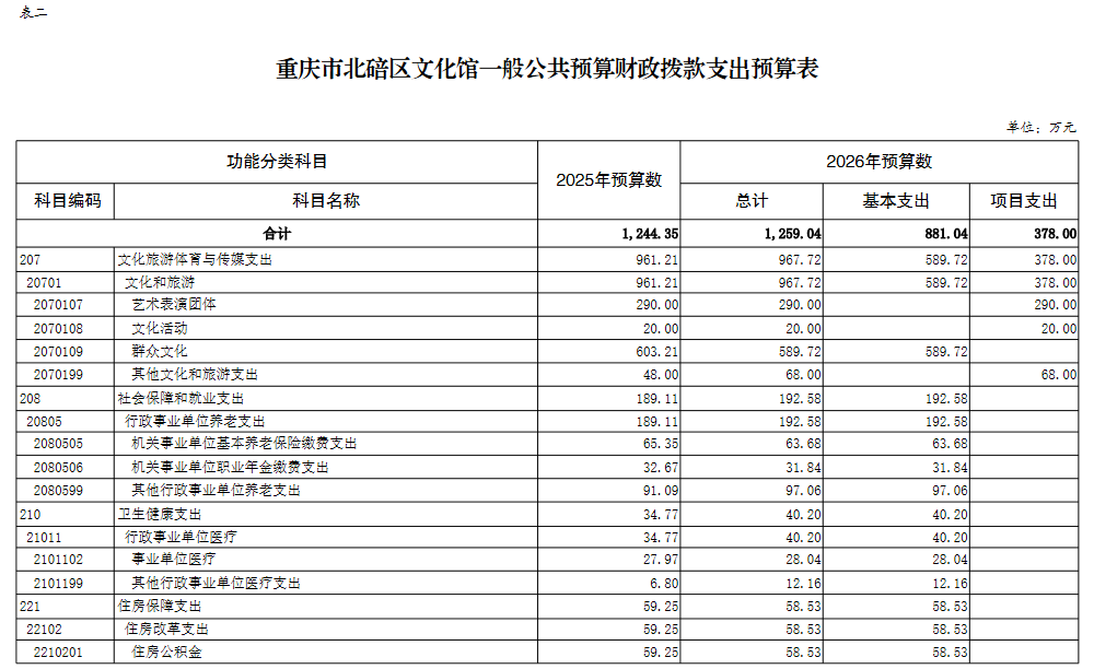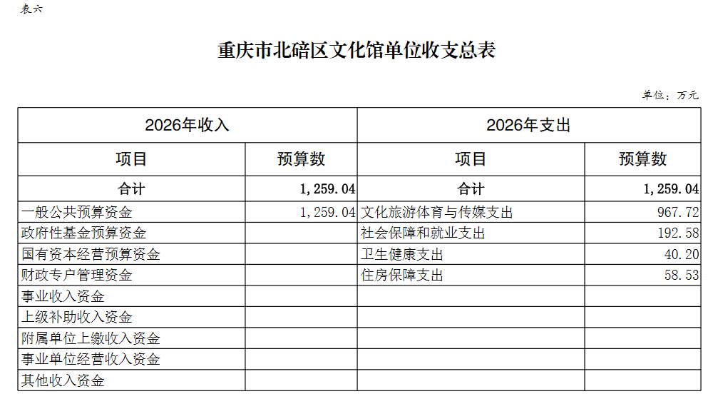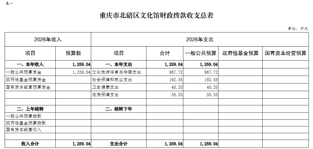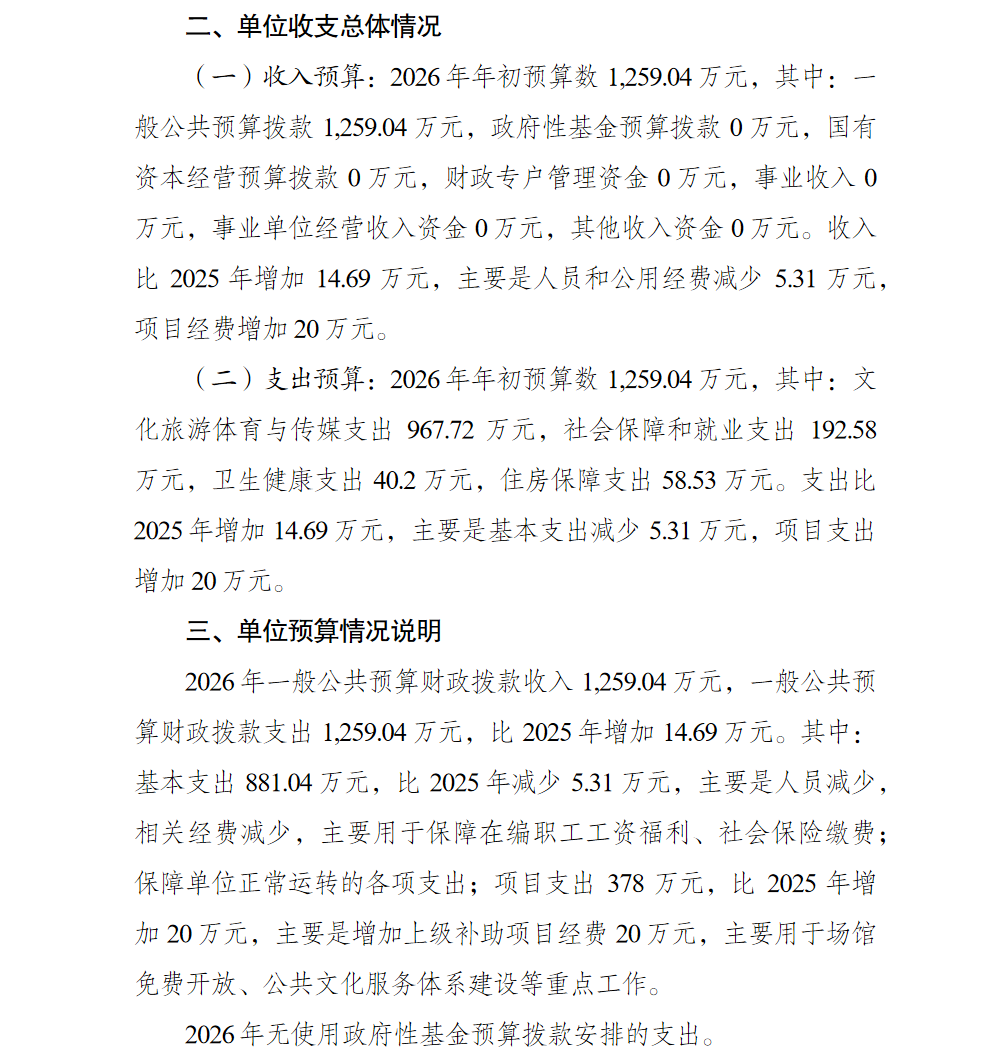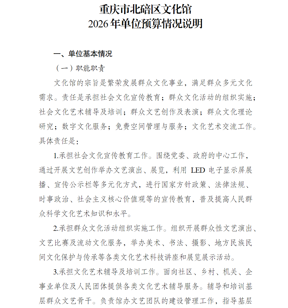 重庆市北碚区文化馆2026年单位预算情况说明