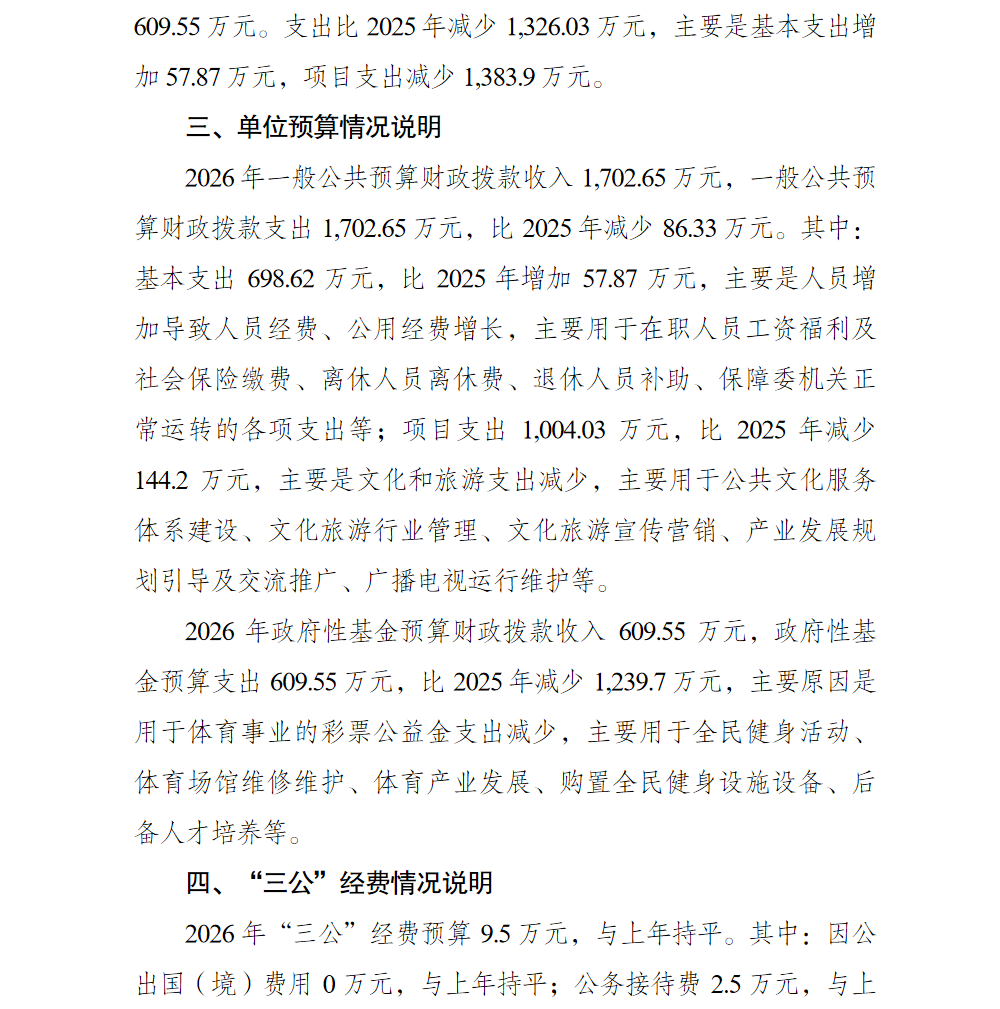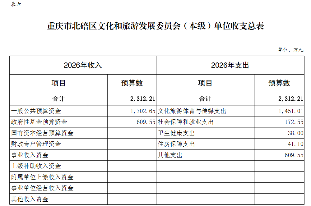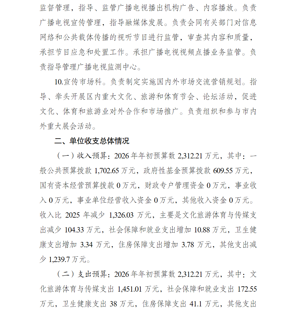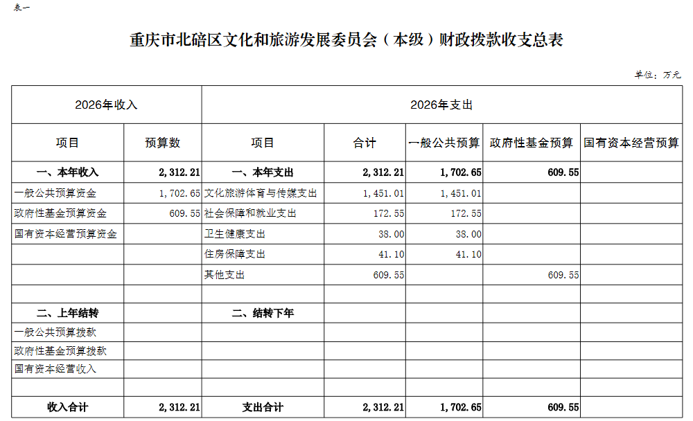 重庆市北碚区文化和旅游发展委员会(本级)2026年单位预算情况说明