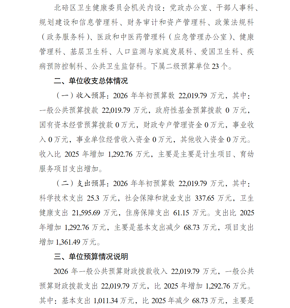 重庆市北碚区卫生健康委员会(本级)2026年单位预算情况说明及附表.pdf