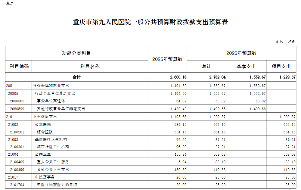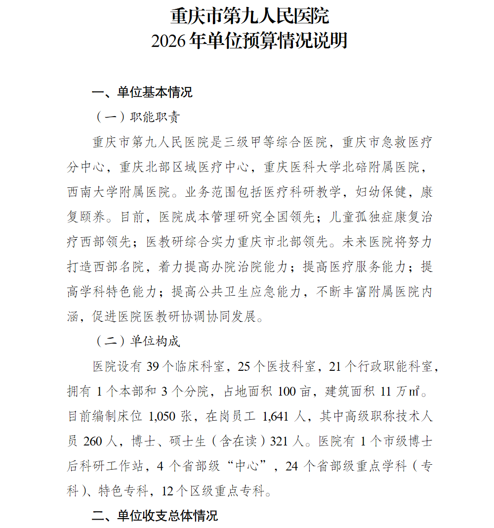 重庆市第九人民医院2026年单位预算情况说明及附表.pdf