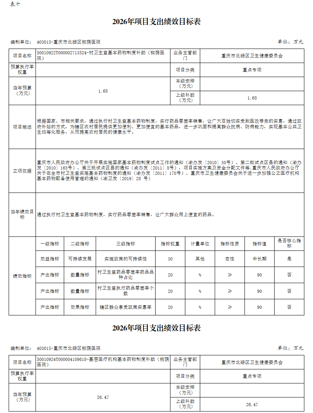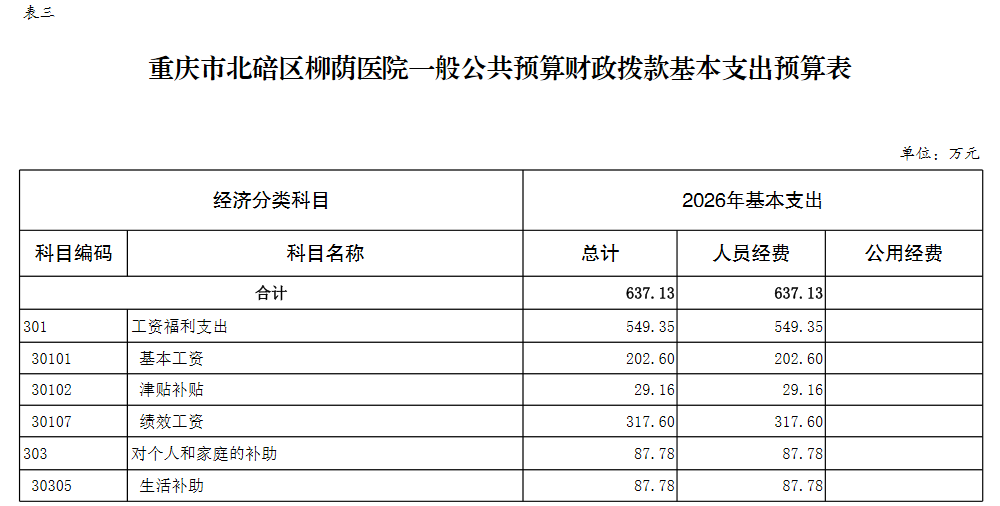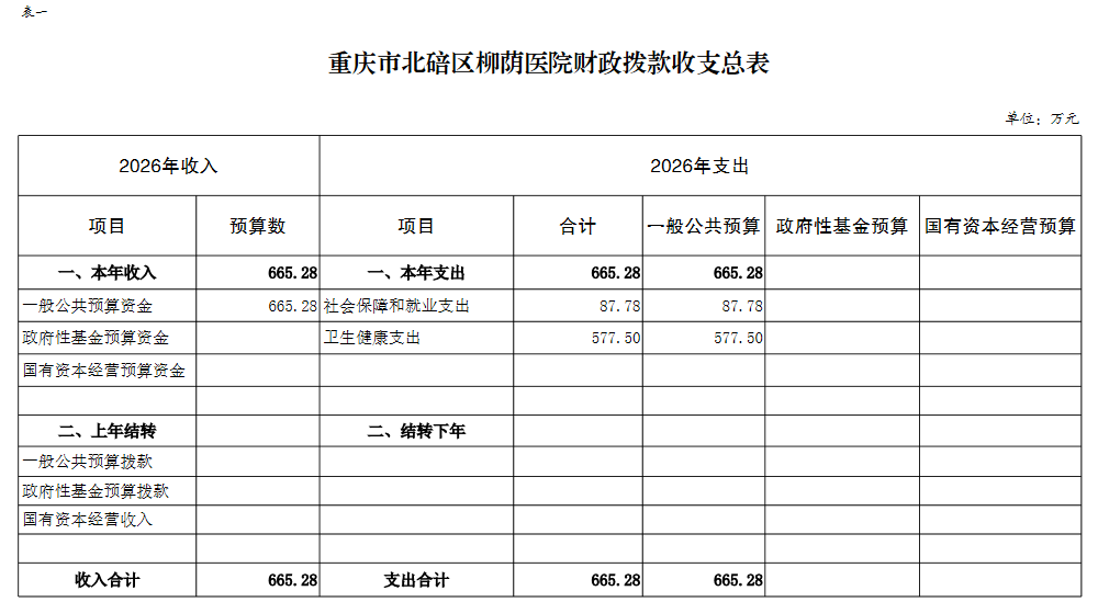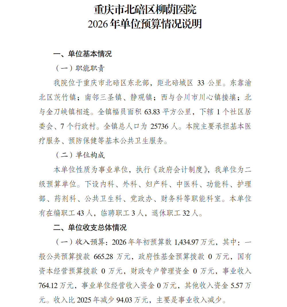 重庆市北碚区柳荫医院2026年单位预算情况说明及附表.pdf