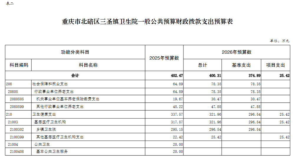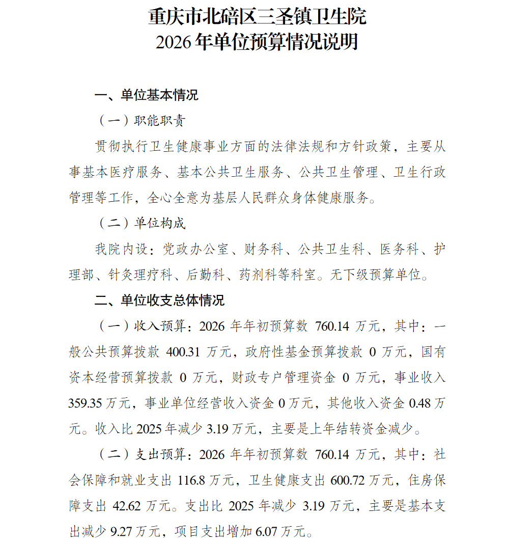 重庆市北碚区三圣镇卫生院2026年单位预算情况说明及附表.pdf