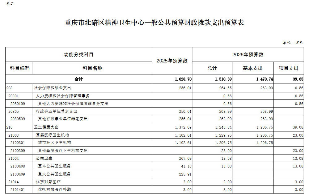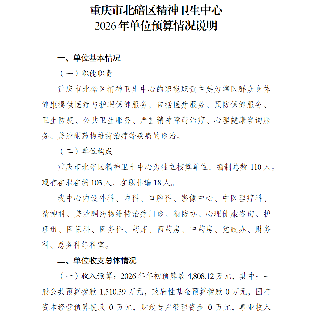 重庆市北碚区精神卫生中心2026年单位预算情况说明及附表.pdf