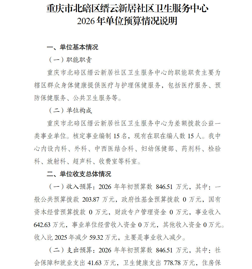 重庆市北碚区缙云新居社区卫生服务中心2026年单位预算情况说明及附表.pdf