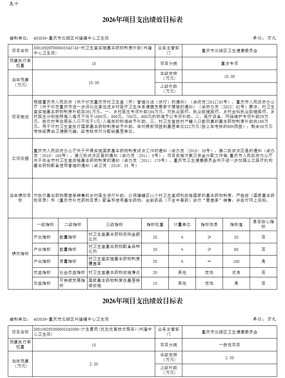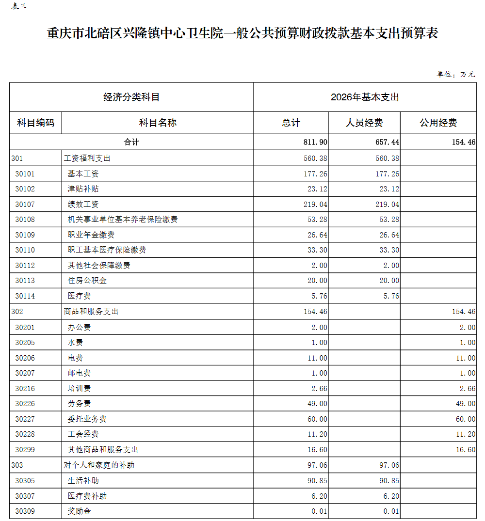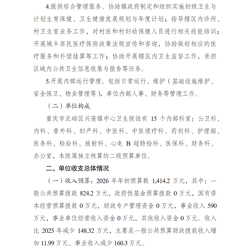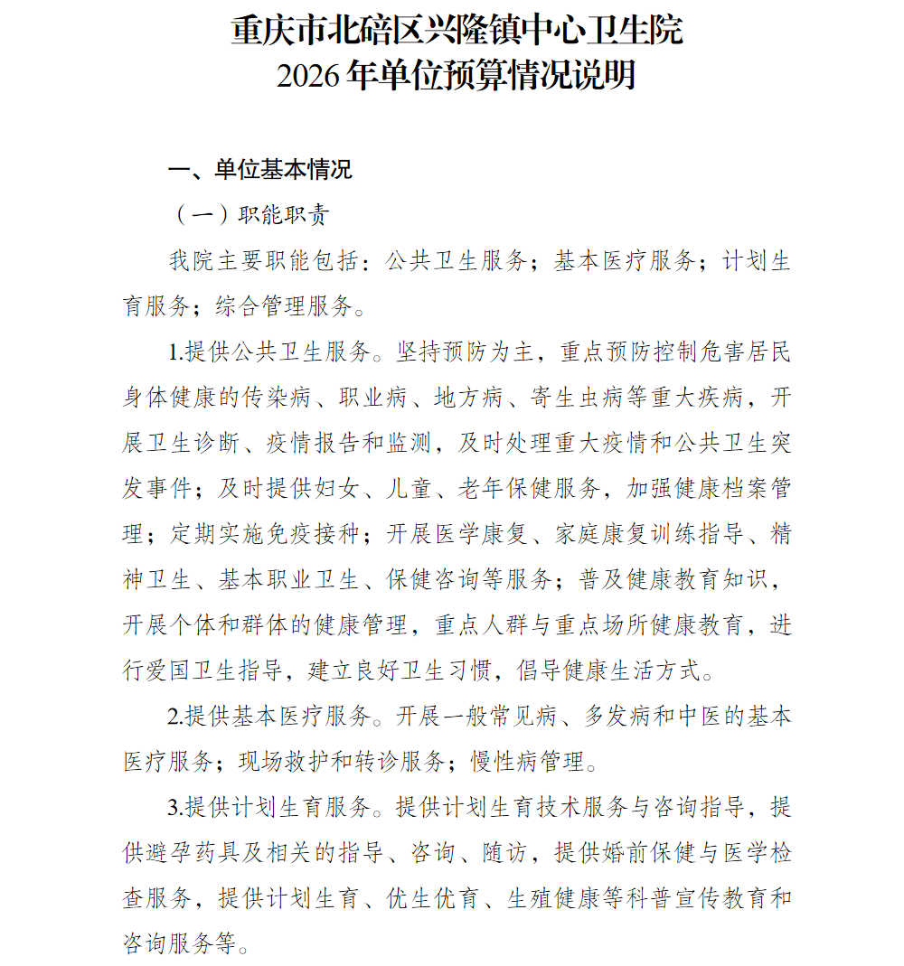 重庆市北碚区兴隆镇中心卫生院2026年单位预算情况说明及附表.pdf