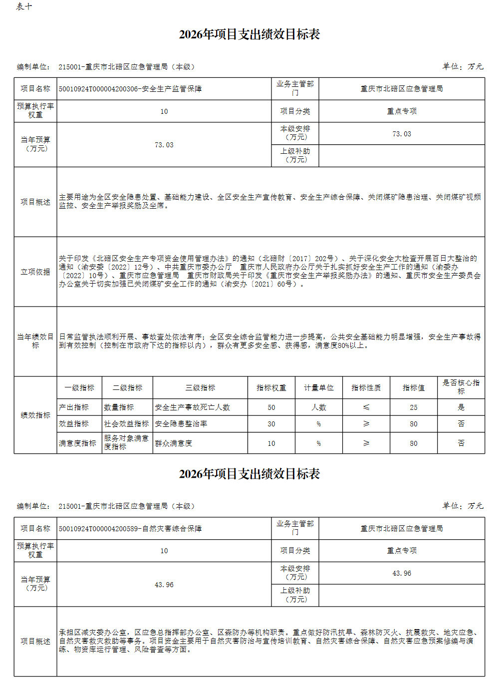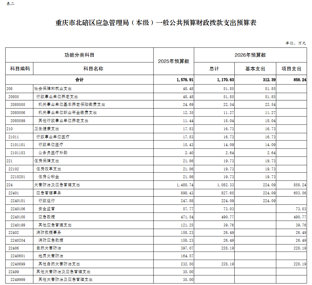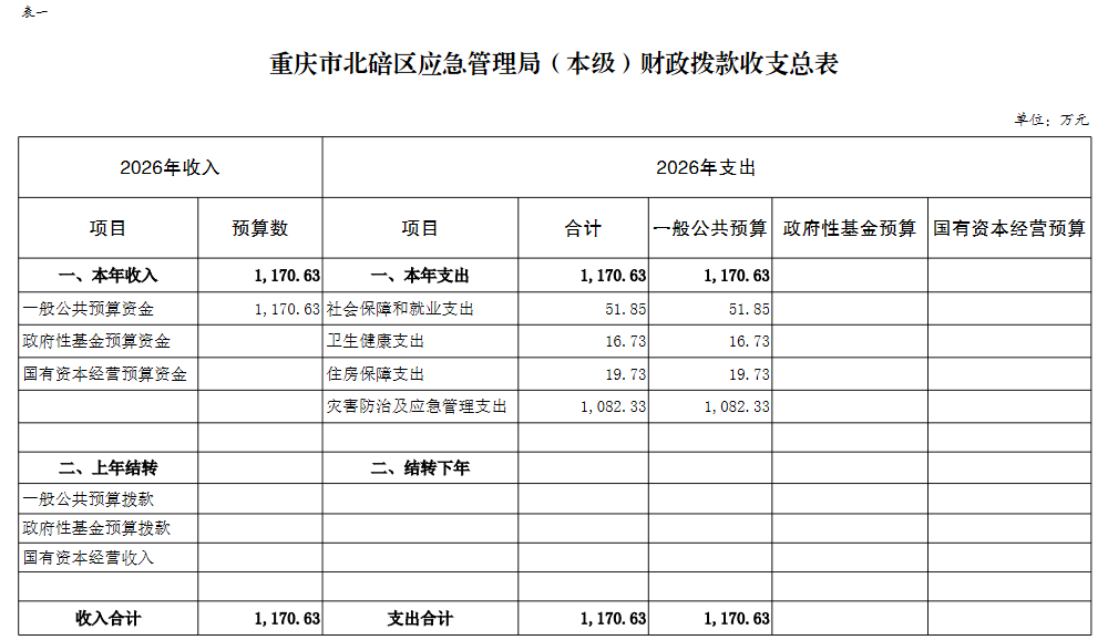 重庆市北碚区应急管理局(本级)2026预算
