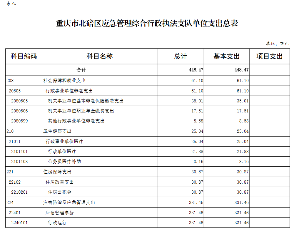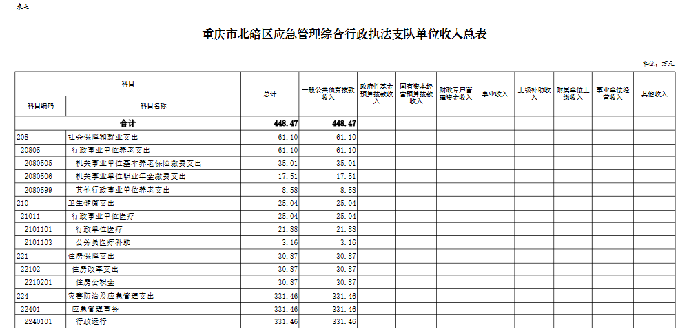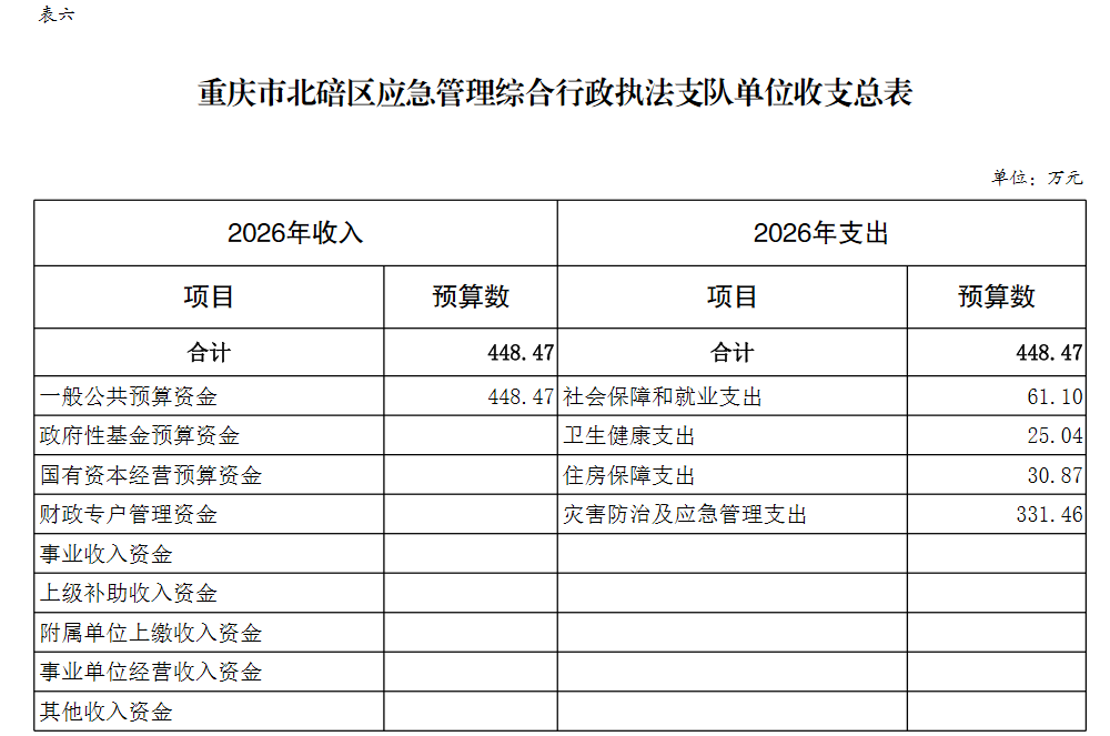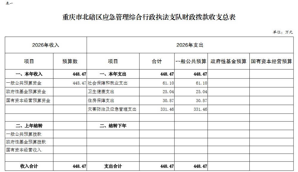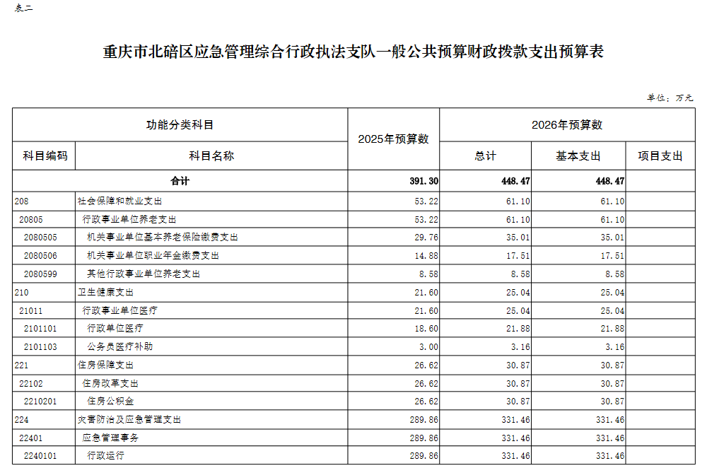 重庆市北碚区应急管理综合行政执法支队2026预算