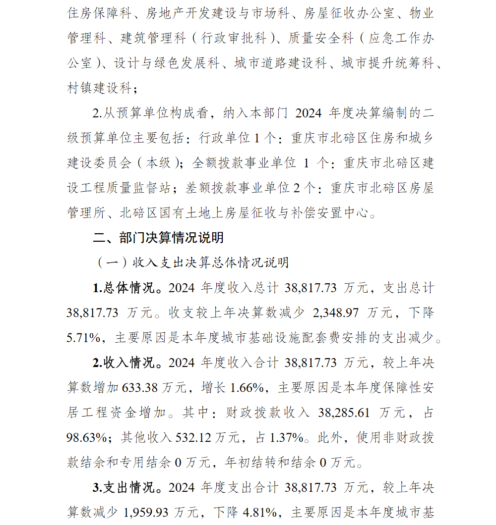 重庆市北碚区住房和城乡建设委员会2024年部门决算情况说明