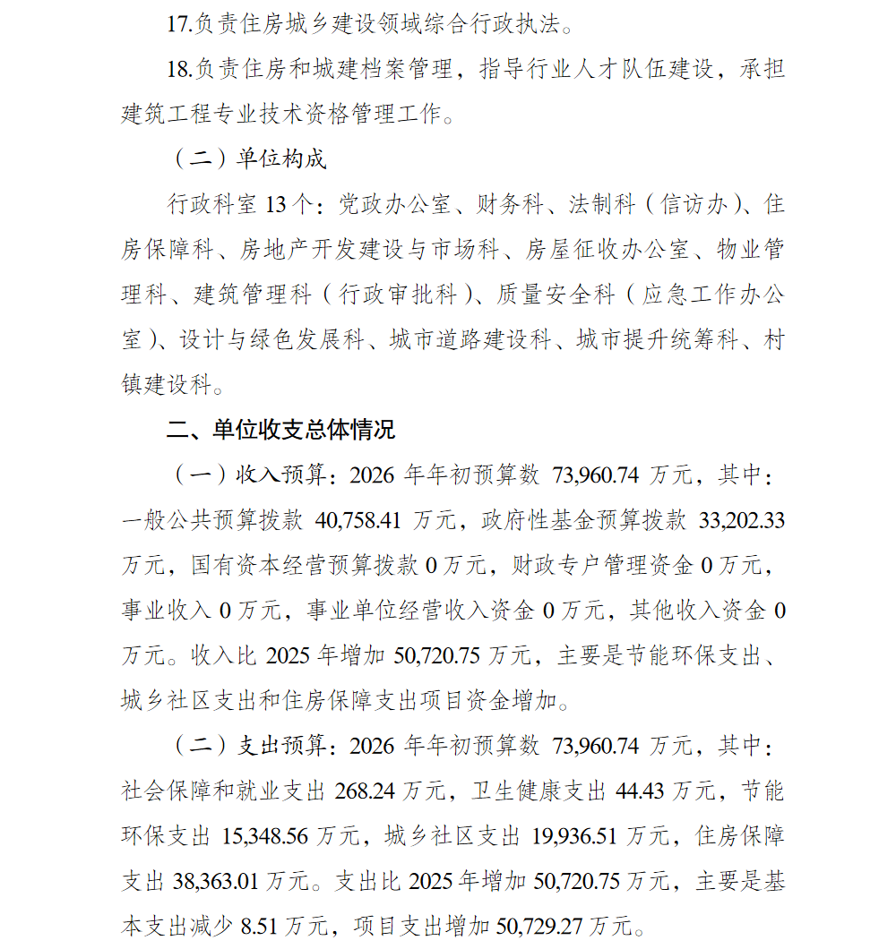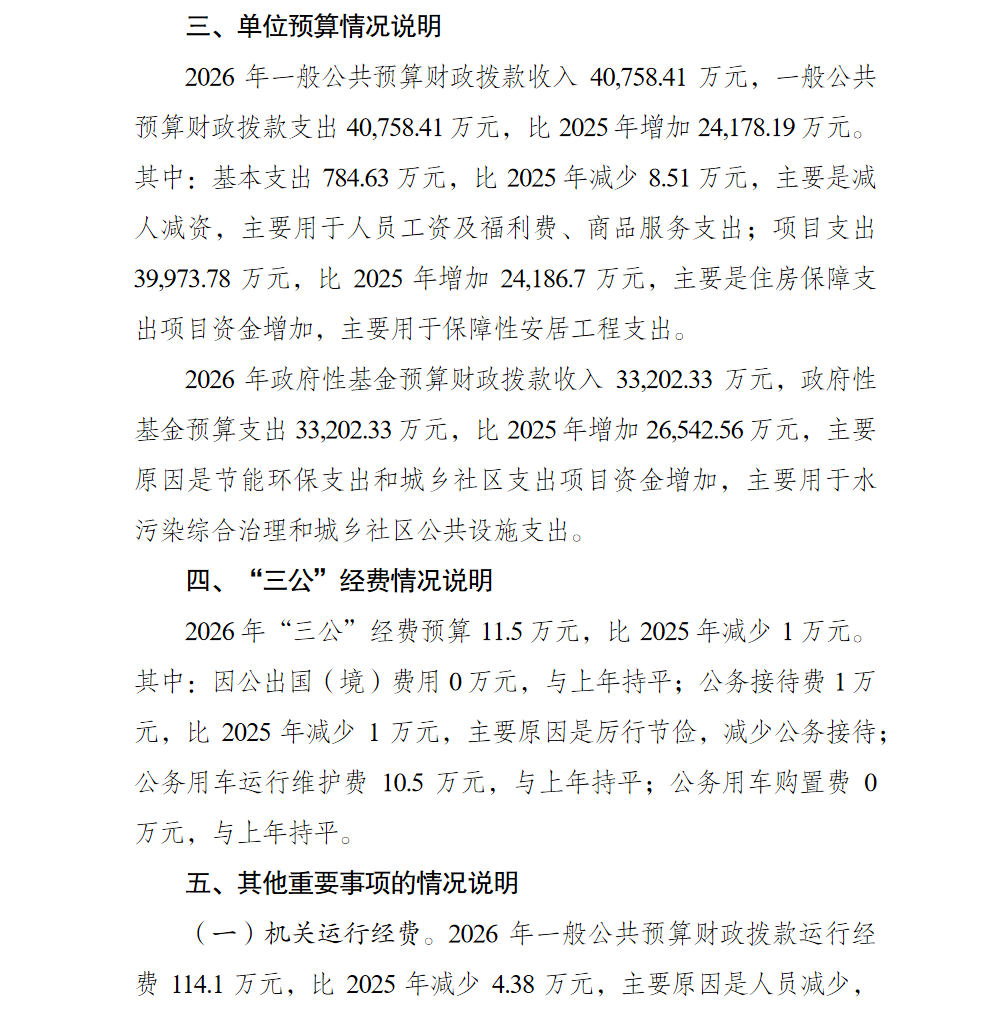 重庆市北碚区住房和城乡建设委员会(本级)2026年单位预算情况说明