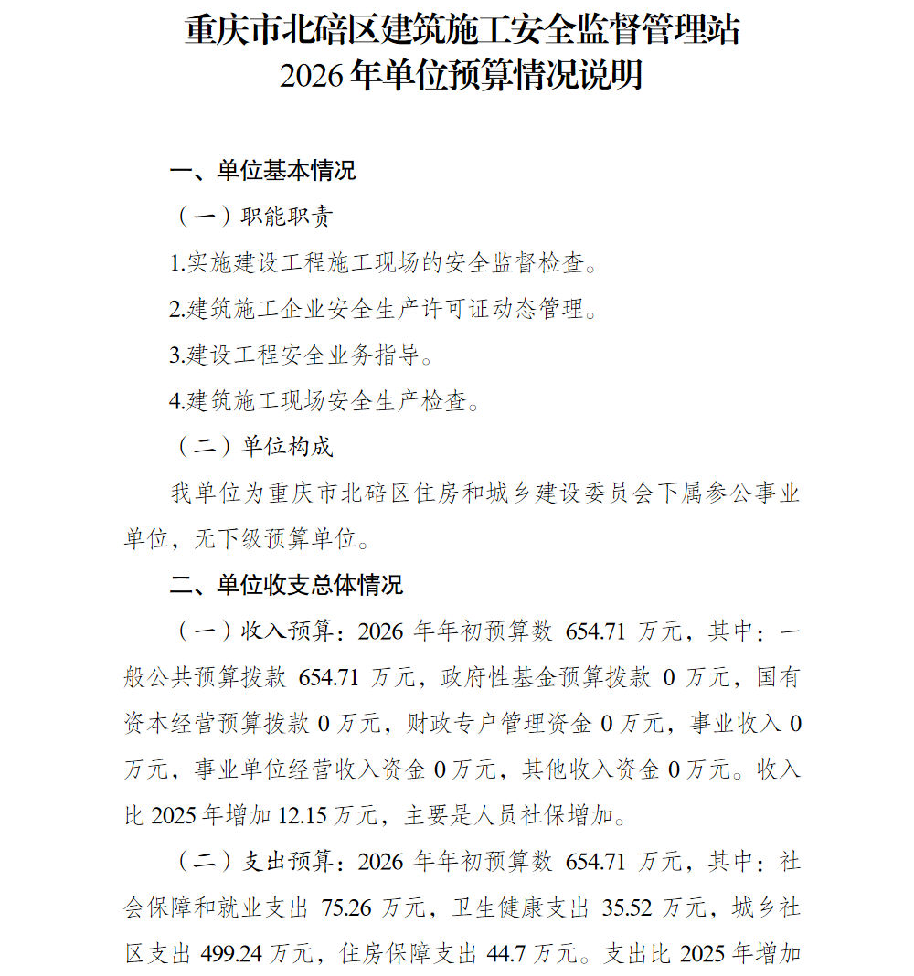 重庆市北碚区建筑施工安全监督管理站2026年单位预算情况说明及附表.pdf