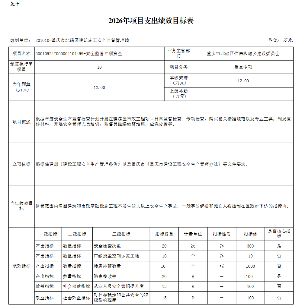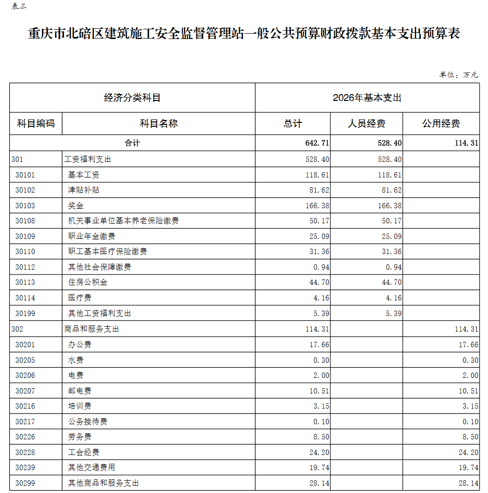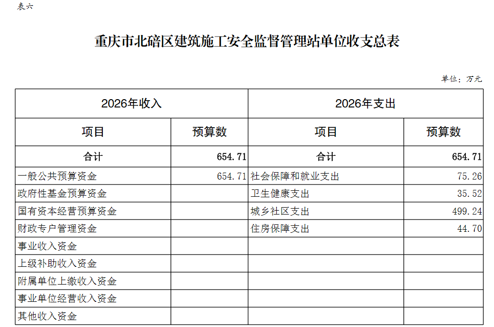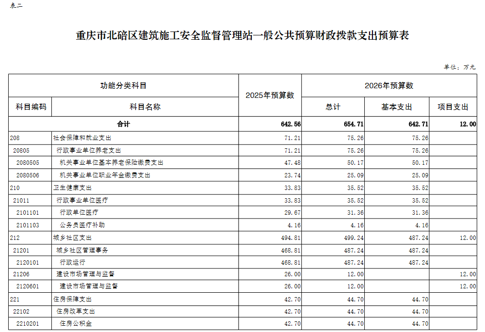 重庆市北碚区建筑施工安全监督管理站2026年单位预算情况说明