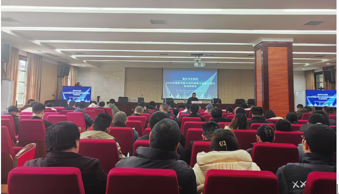 为深入贯彻中央城市工作会议精神,提升建筑节能与绿色建筑实施能力,支撑“好房子”建设,2026年1月12日,北碚区住房城乡建委组织召开建筑节能与绿色建筑实施能力提升专项培训会,全区在建项目从事现场管理的负责人、技术人员参加培训。