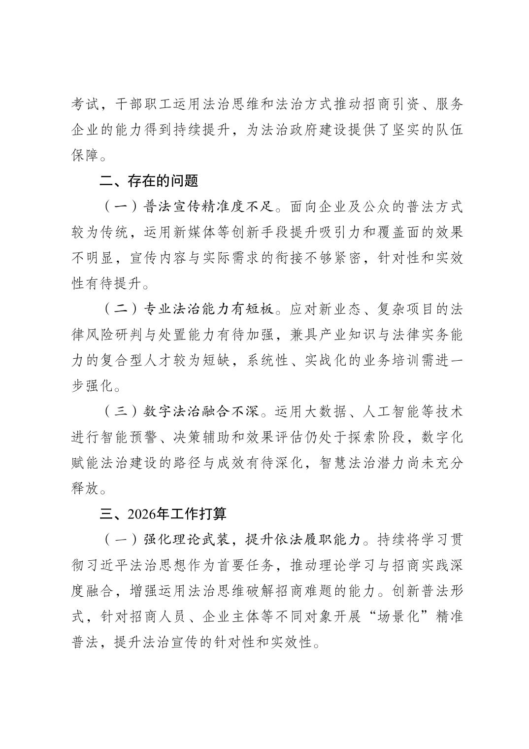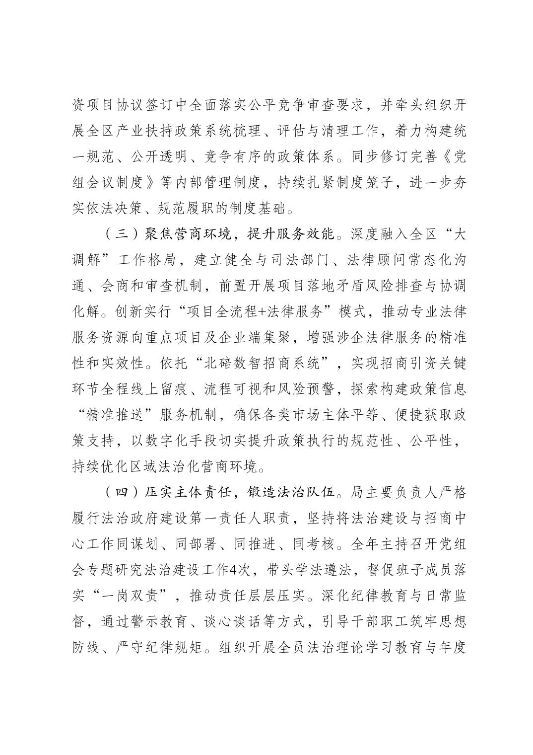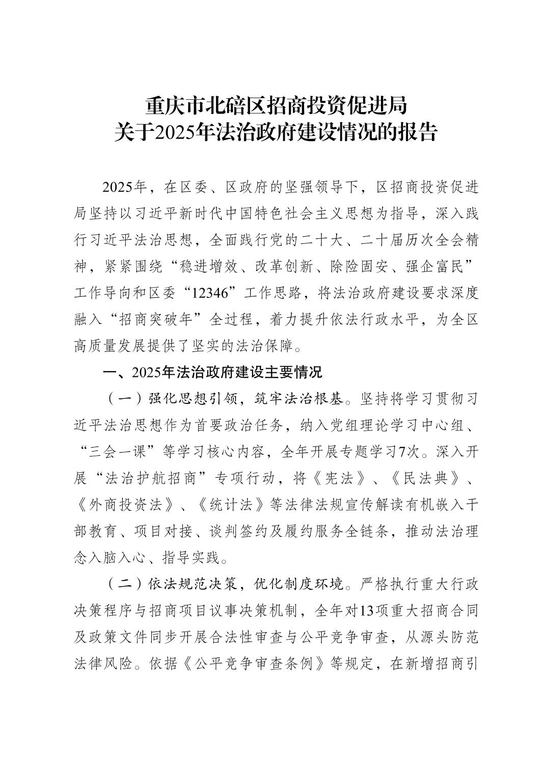 重庆市北碚区招商投资促进局关于2025年法治政府建设情况的报告