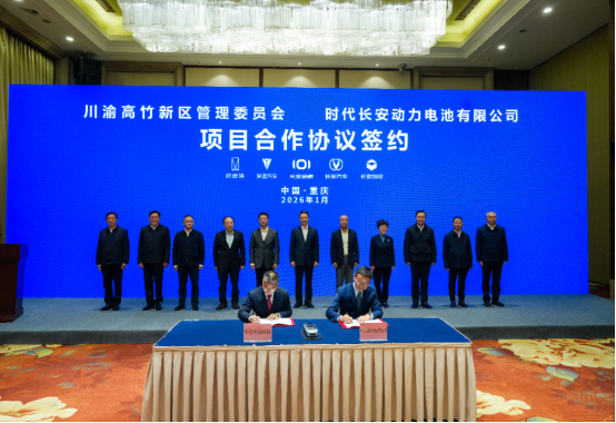 ▲2026年1月14日,时代长安动力电池项目签约仪式。