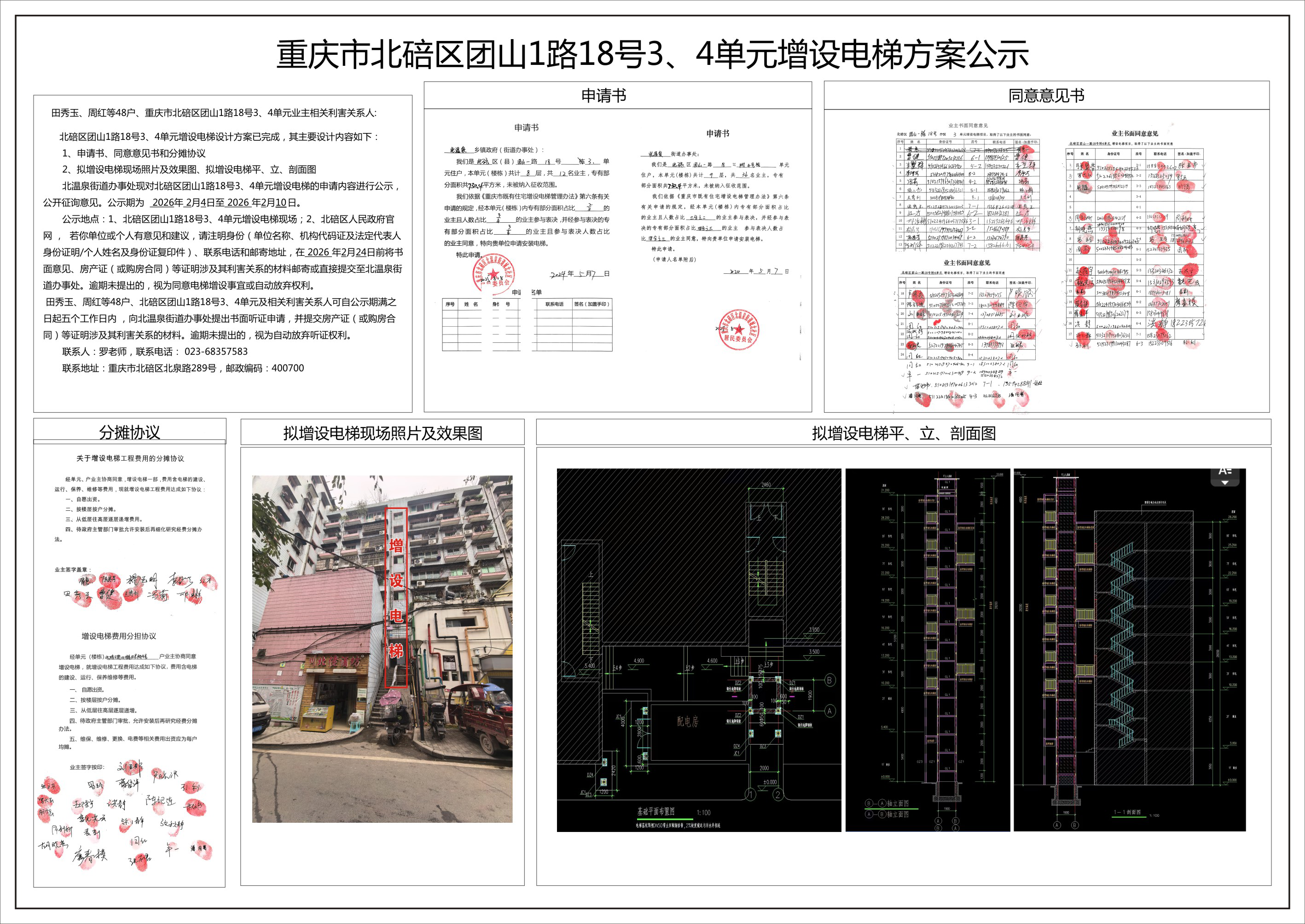 重庆市北碚区团山1路18号3、4单元增设电梯方案公示