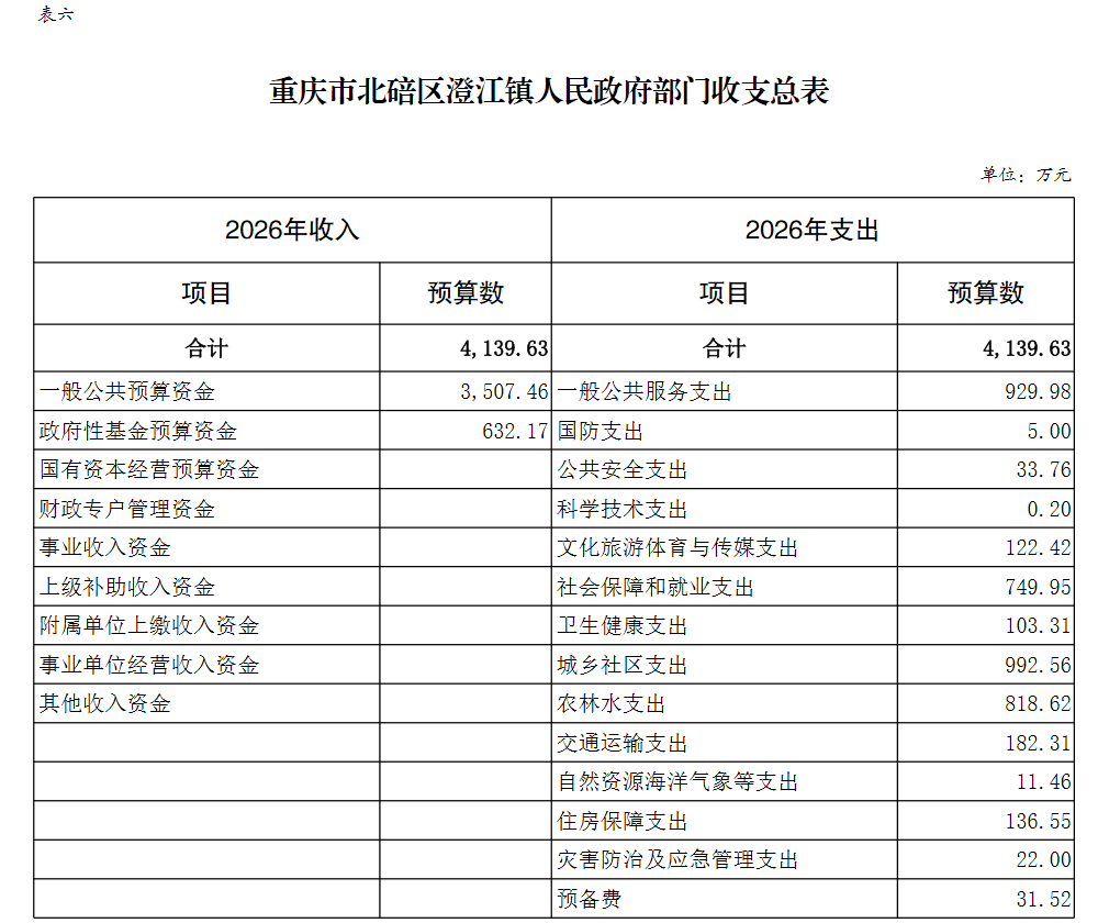 重庆市北碚区澄江镇人民政府2026年部门预算情况说明及附表