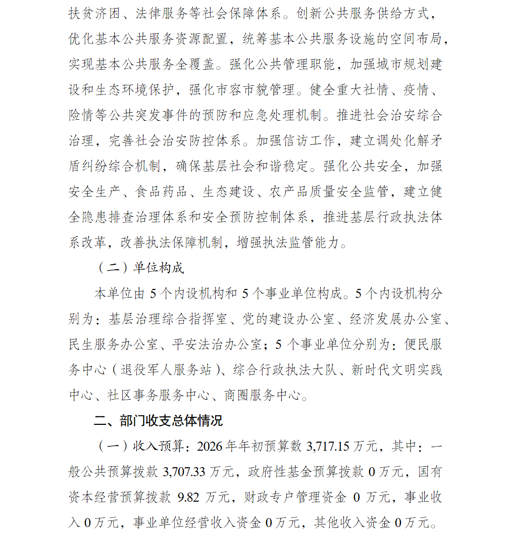 重庆市北碚区人民政府朝阳街道办事处2026年部门预算情况说明