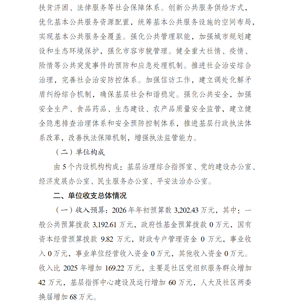 重庆市北碚区朝阳街道办事处(本级)2026年单位预算情况说明
