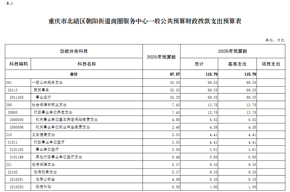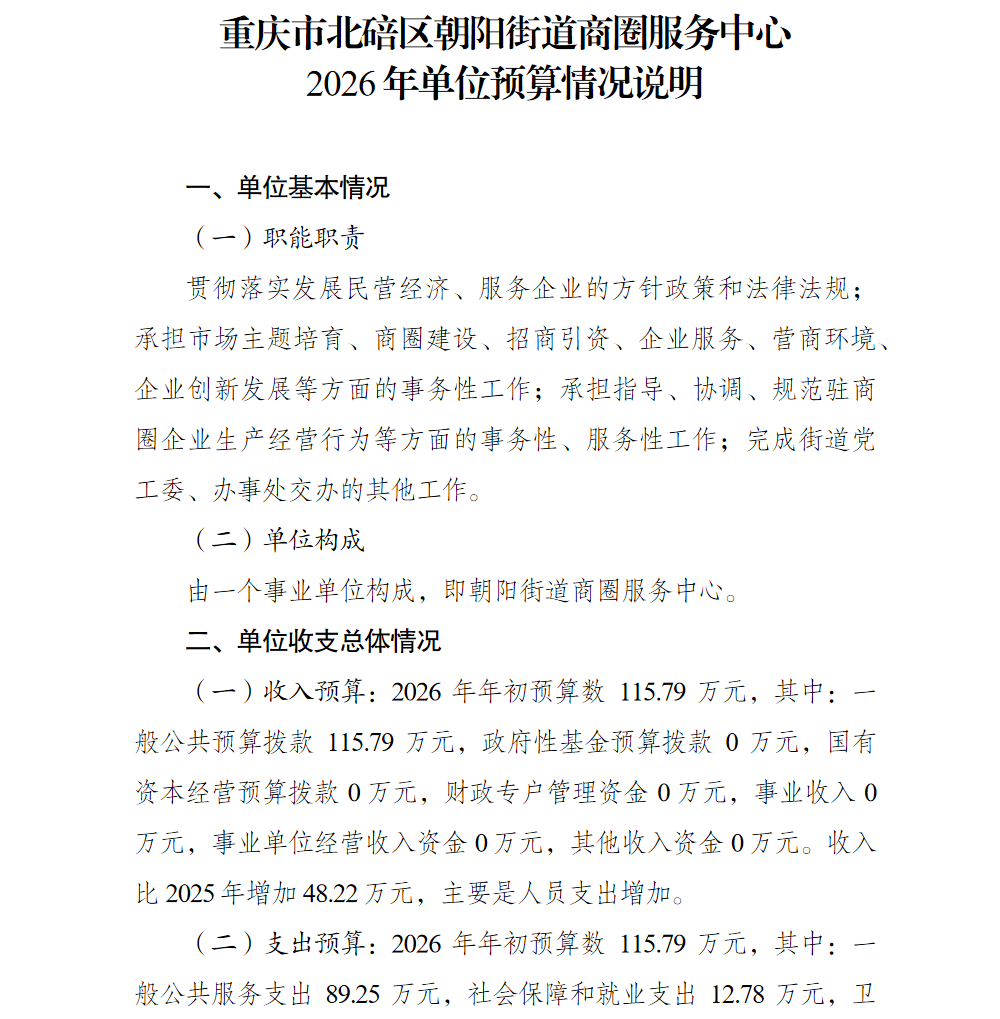 重庆市北碚区朝阳街道商圈服务中心2026年单位预算情况说明及附表.pdf